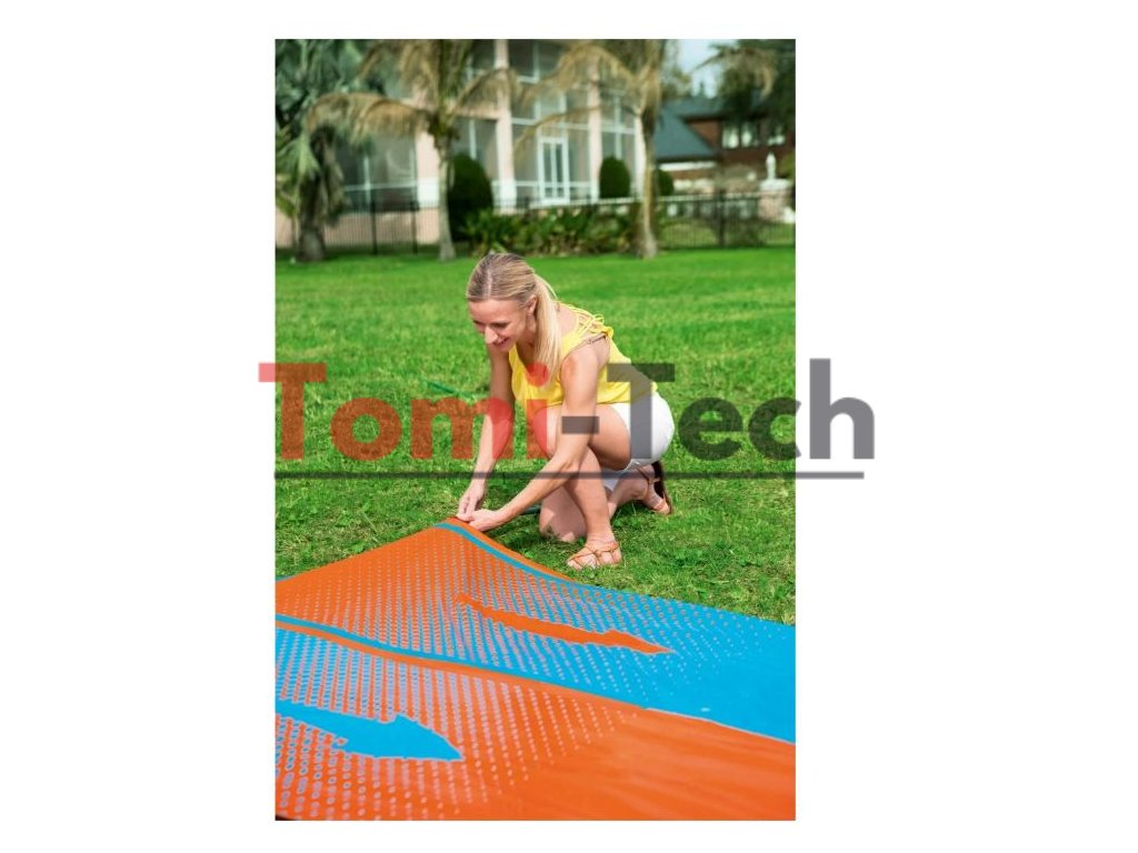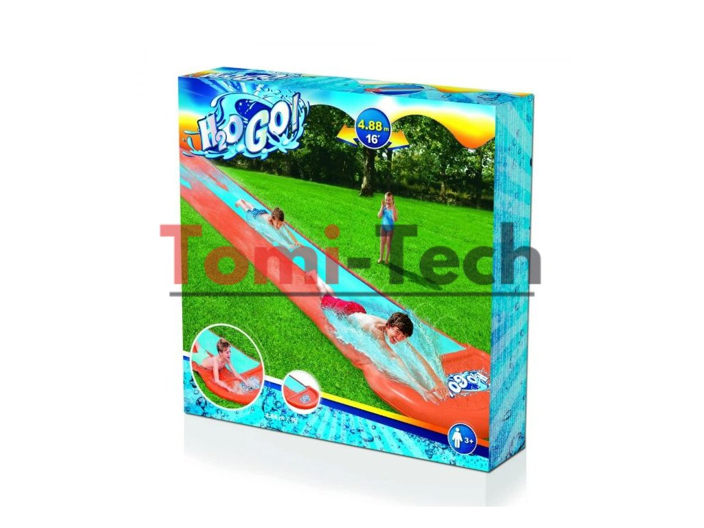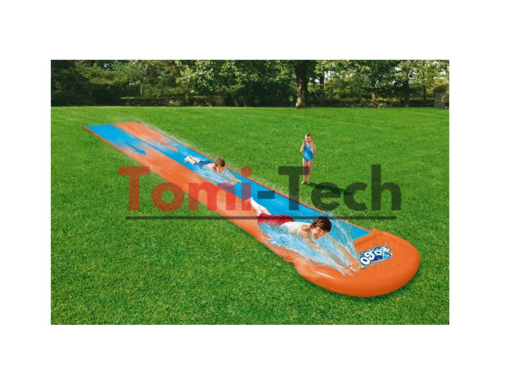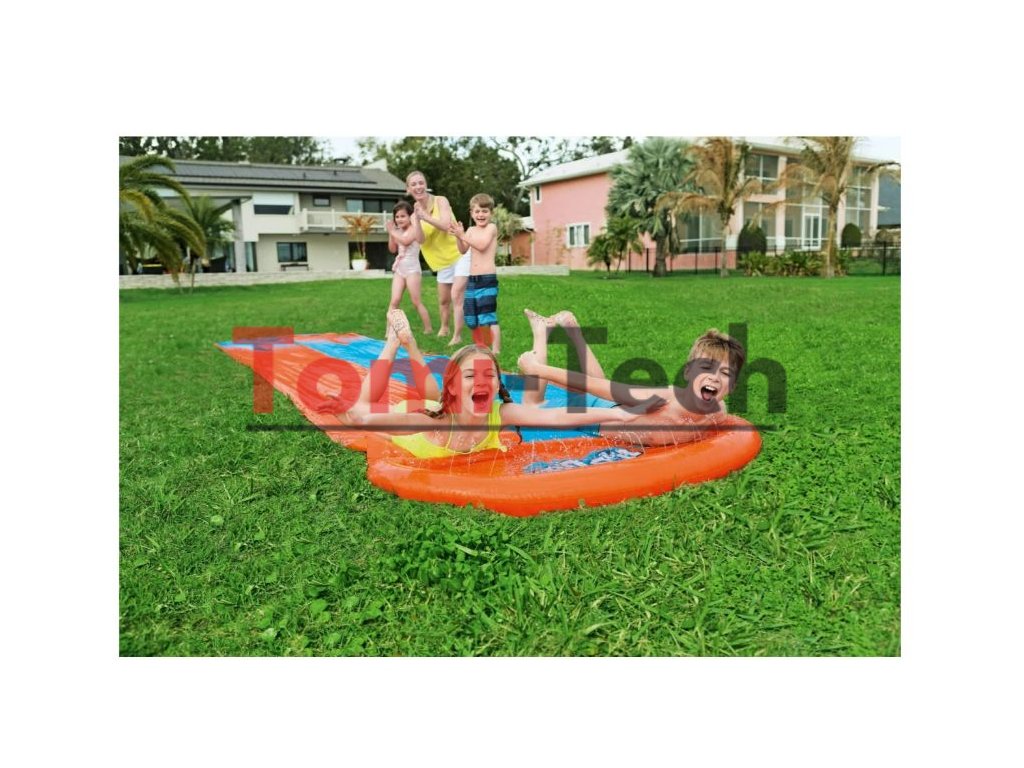 Slávna značka Bestway vytvorila dvojitý tobogán s cieľom poskytnúť čo najviac zábavy a nezabudnuteľných chvíľ počas horúcich dní. Všetko, čo potrebujete, je záhradná hadica pripojená k vode. Celá šmykľavka je vyrobená z odolného PVC materiálu odolného voči zafarbeniu, vďaka čomu zábava nikdy neskončí. Táto takmer päťmetrová farebná šmykľavka je ako stvorená na súťaže a skupinové hry. Vstavané postrekovače navyše zabezpečia šmykľavý povrch tratí.