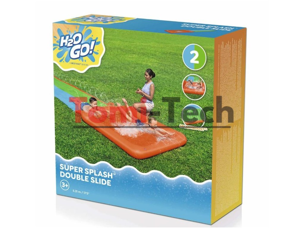 Užite si leto plné zábavy s dvojitou vodnou šmýkačkou Super Splash od BESTWAY! Tento produkt je ideálny pre deti od 3 rokov a zabezpečí nekonečné hodiny radosti v teplých letných dňoch.