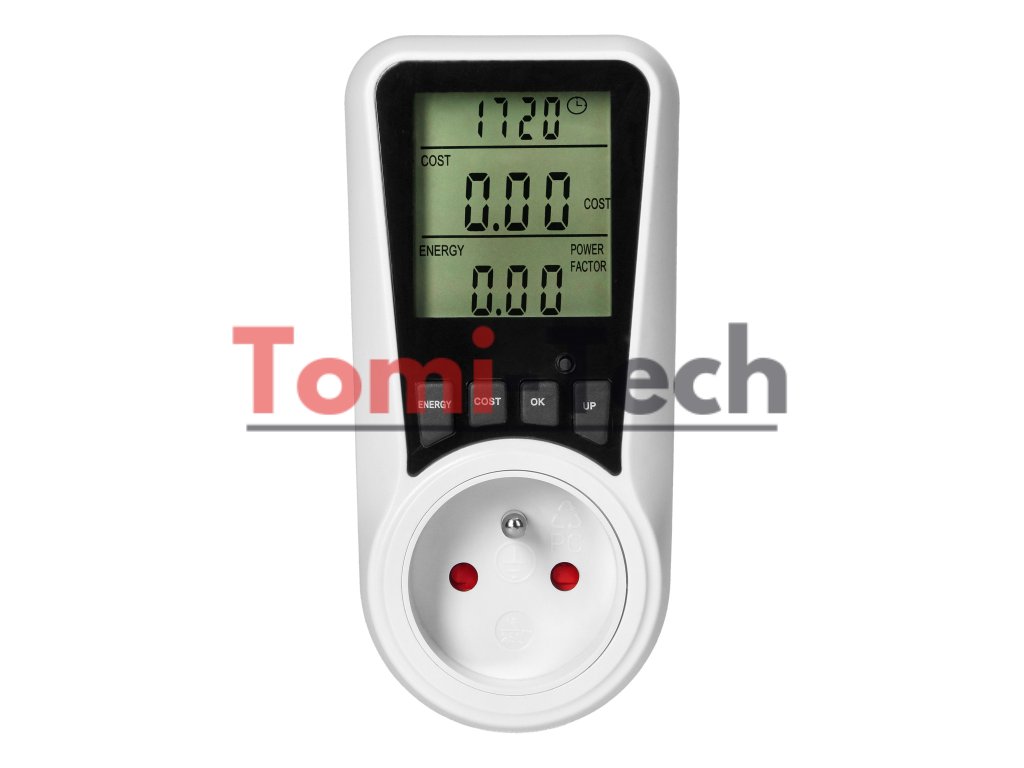 Dvojtarifný wattmeter, kalkulačka energie s LCD displejom, 2 samostatné tarify, interná batéria, 16A 230V