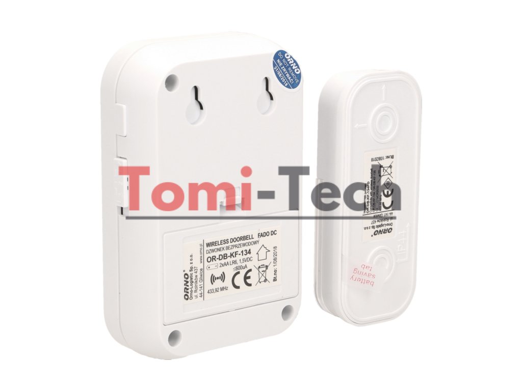 Bezdrôtový zvonček, dosah v otvorenom priestore až 100 m, vodeodolné tlačidlo, rádiový prenos (frekvencia 433 MHz), nastaviteľná hlasitosť zvonenia, hladina zvuku 69 – 89 dB, 36 vyzváňacích tónov na výber, počet tlačidiel spolupracujúcich je možné podľa potreby zvýšiť, systém učenia (automatické prihlásenie), nevyžaduje inštaláciu zvončeka.Dodatočné parametre