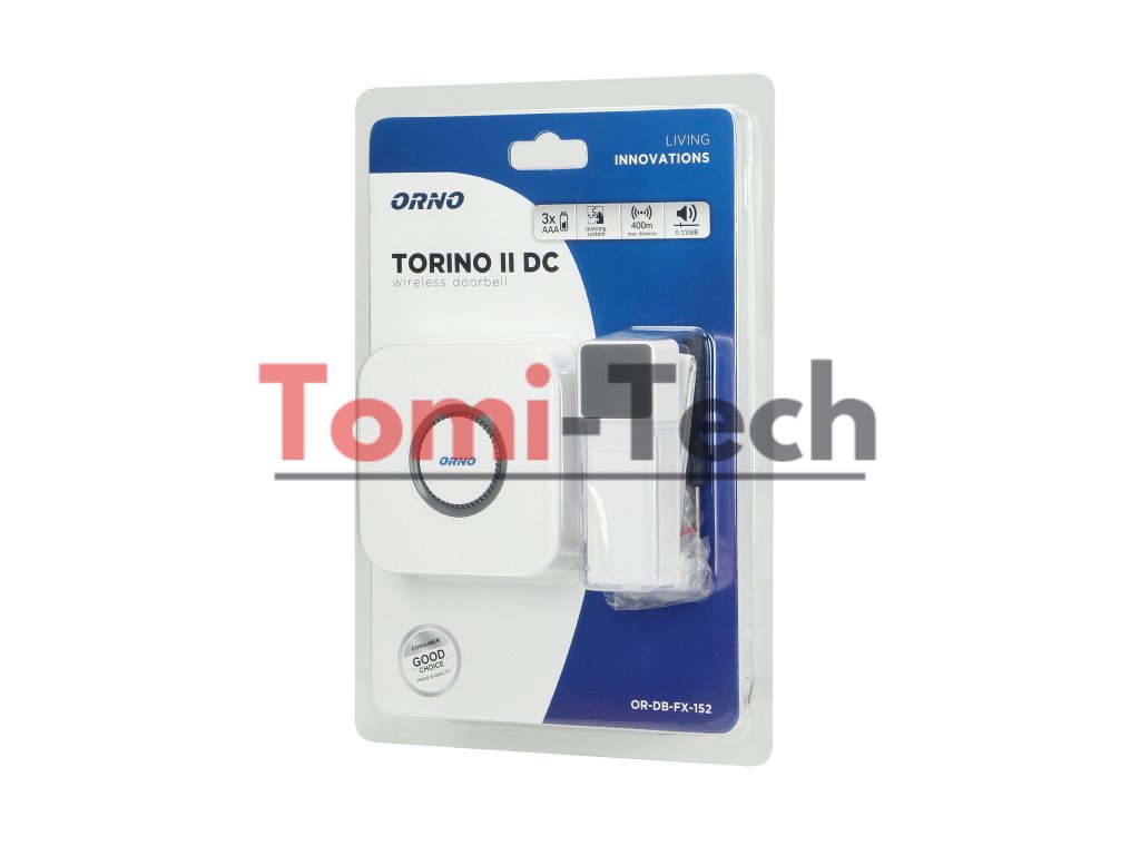 Bezdrôtový zvonček TORINO II DC, napájaný batériami, učebný systém, 58 zvukov, dosah 400 m