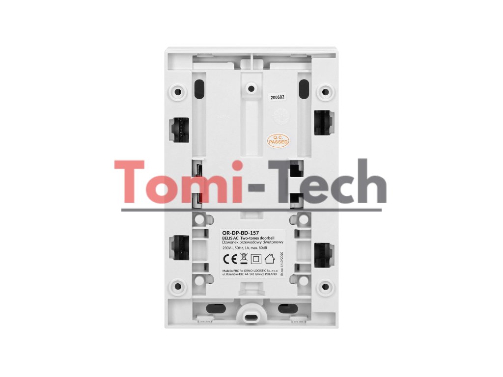 Dvojtónový zvonček BELIS je ľahko inštalovateľný a pohodlne použiteľný elektromechanický zvonček. Je určený na použitie v uzavretých priestoroch s napätím 230 V, ako sú domy, byty, obchody atď. Má tiež zabudovaný transformátor, ktorý zabezpečuje bezpečné napätie (8 V) pre tlačidlo zvončeka.Dodatočné parametre