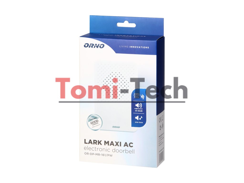 Jednotónový drôtový zvonček LARK MAXI 230V AC. Tento ľahko inštalovateľný a praktický elektronický zvonček s ovládaním hlasitosti je určený na použitie v uzavretých priestoroch so zvončekovým systémom 230V AC, ako je dom alebo byt. K dispozícii v snehobielej farbe.Dodatočné parametre