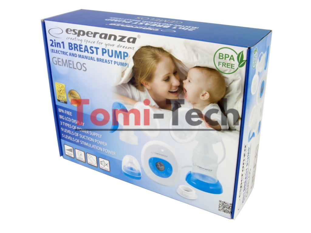 ECM003B Esperanza elektrická/manuálna odsávačka mlieka 2v1 gemelos modrá