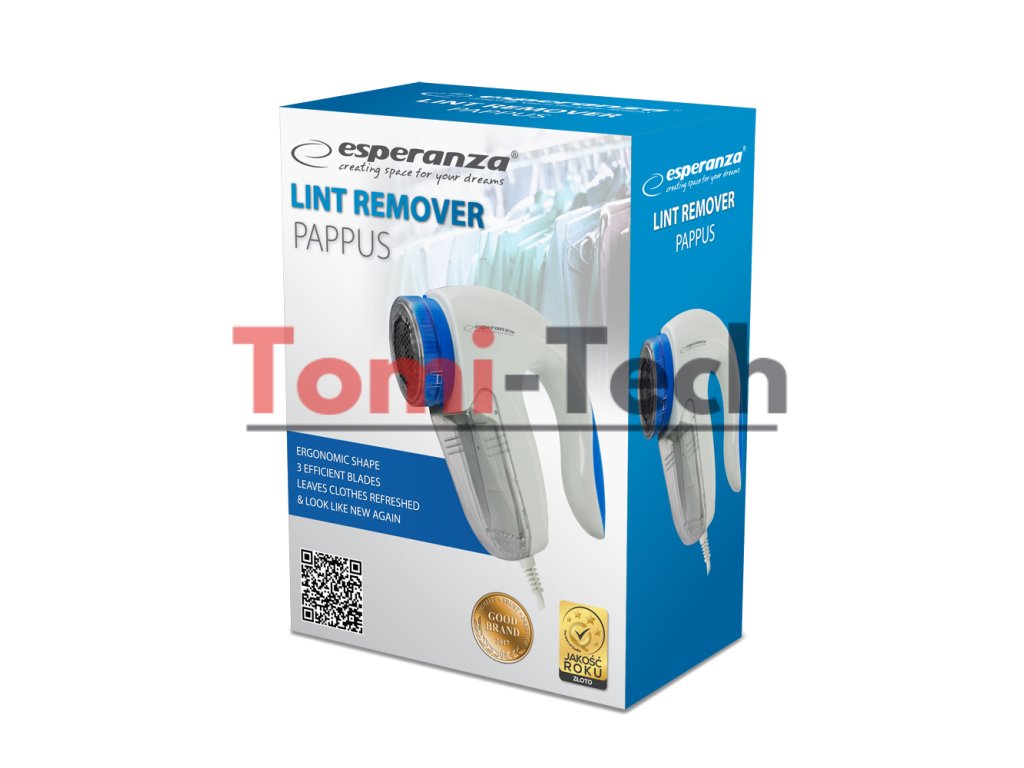 Holiaci strojček na tkaniny Esperanza PAPPUS je praktický prístroj na odstraňovanie žmolkov z oblečenia, čalúnenia, prikrývok a iných textílií, vďaka čomu vyzerajú dlhšie ako nové. Jeho ergonomický tvar perfektne padne do ruky. Vďaka napájaniu zo siete ho môžete používať bez obáv o batérie. Priehľadná nádoba na odpad ukazuje, kedy je čas ju vyprázdniť. Holiaci strojček rýchlo a efektívne odstraňuje žmolky.