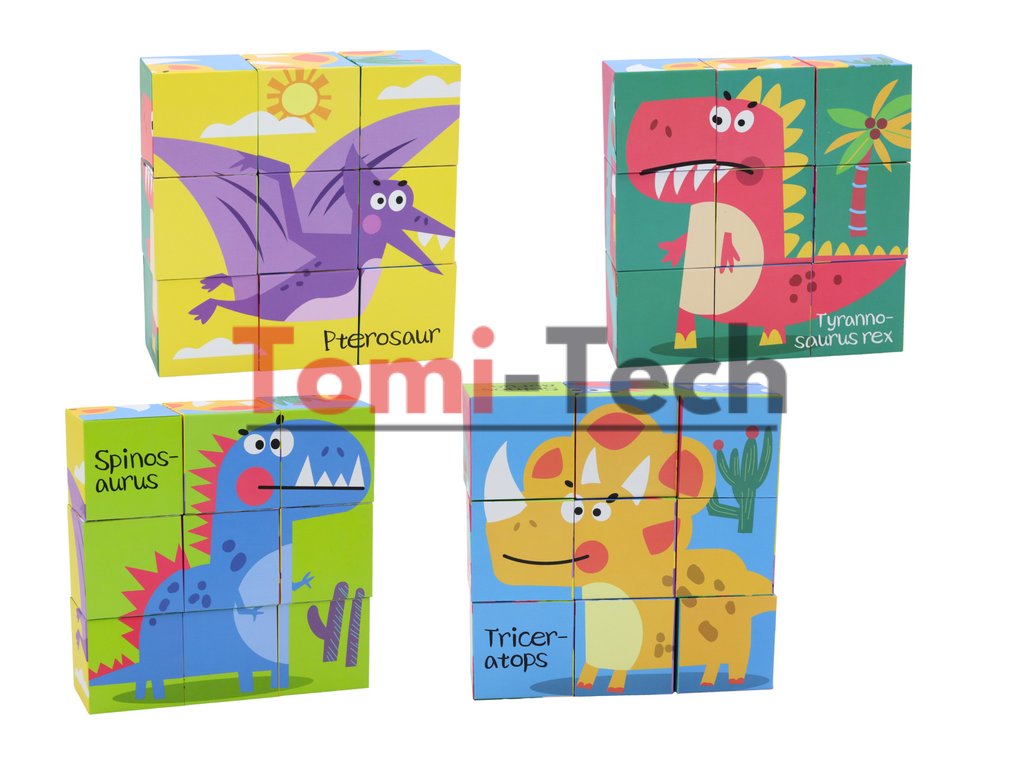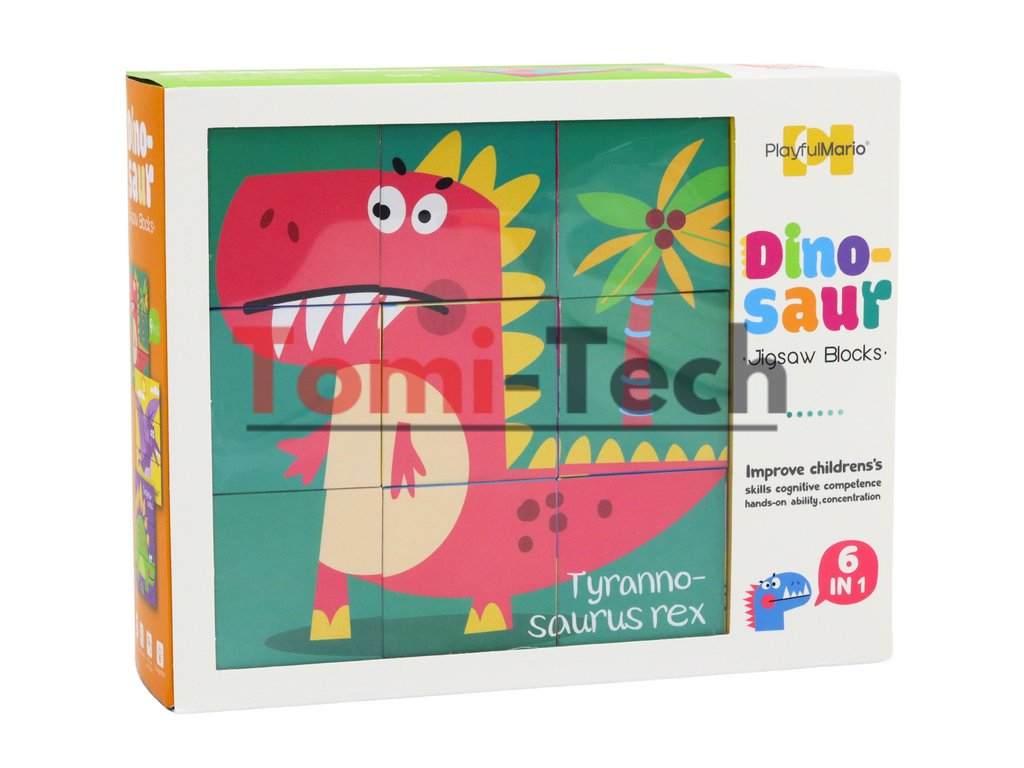 Vzdelávacie puzzle 6 v 1, skladačky, kocky, 6 obrázkov, dinosaury, 9 dielikov.