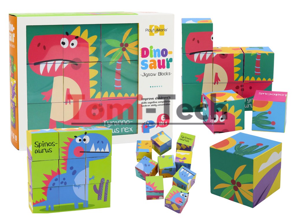 Fantastické puzzle 6 v 1, ktoré vášmu dieťaťu poskytnú veľa hodín kreatívnej zábavy! Každá sada obsahuje 9 kociek s rozmermi 6 cm x 6 cm x 6 cm, z ktorých každá predstavuje jeden dielik obrázka. Toto úžasné puzzle kombinuje prvky stavebnej zábavy s puzzle, pretože keď správne poskladáte všetkých 9 dielikov obrázku, vznikne krásny dinosaurus!