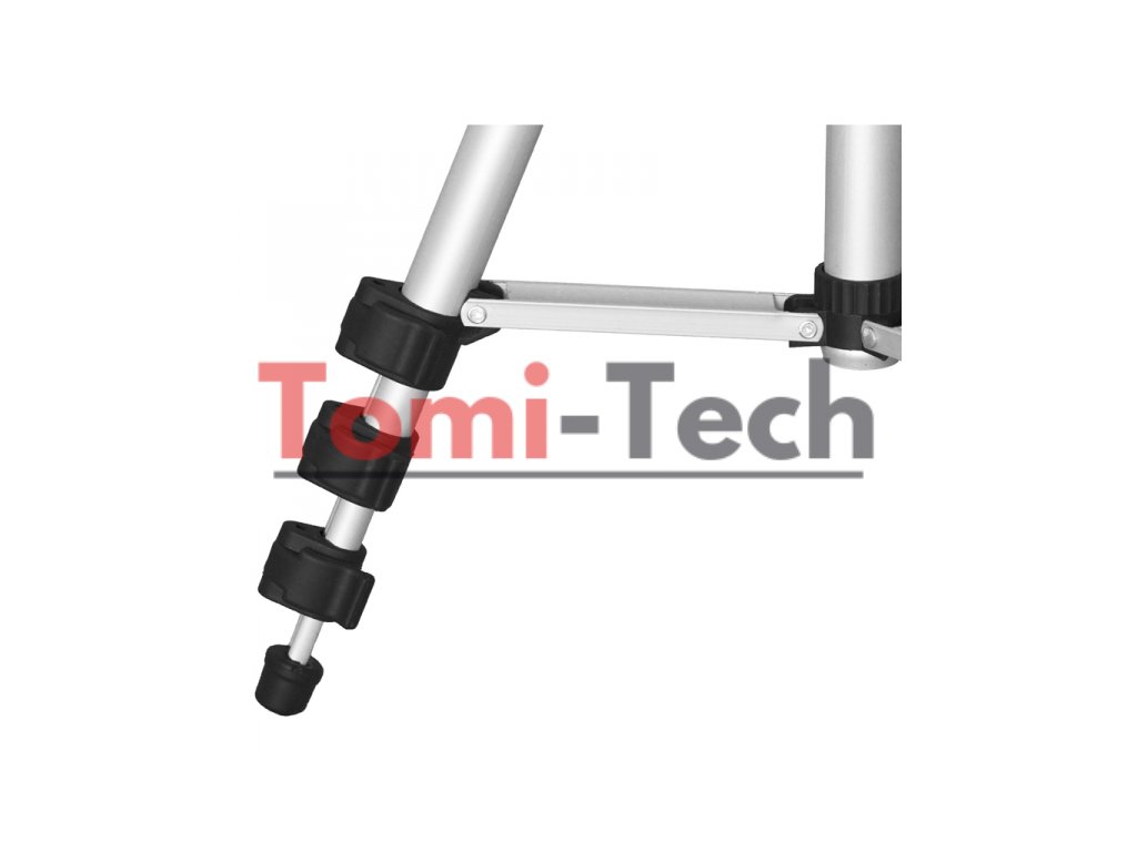 Statív s výsuvným stĺpikom. Určený pre fotoaparáty, videokamery, laserové meracie zariadenia, diaľkomery atď. Ľahká zliatina, malá veľkosť a odolné puzdro uľahčujú prenášanie a používanie v práci aj doma. Pohodlné výsuvné nohy a montážne konzoly umožňujú rýchle nastavenie statívu do správnej výšky.