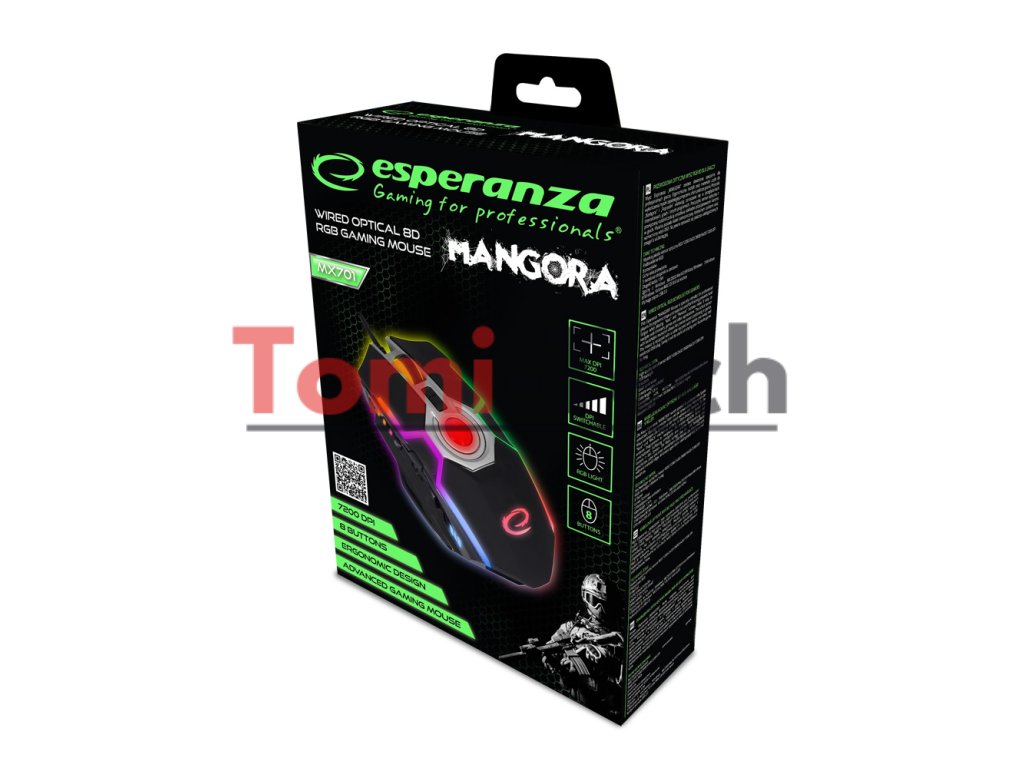 Herná káblová myš Esperanza EGM701, RGB LED, 8D, optická, USB, Mangora