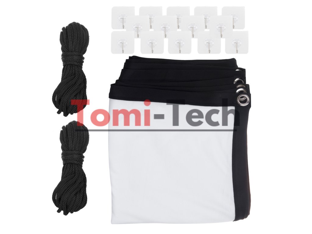 Plátno bolo navrhnuté s ohľadom na maximálne pohodlie pri používaní. Inštalácia je mimoriadne jednoduchá a rýchla - stačí plátno zavesiť na priložené samolepiace háky alebo ho pripevniť lanami. Vďaka tejto flexibilnej inštalácii je obrazovka ideálna pre domácnosti, kancelárie, konferenčné miestnosti, školy alebo dokonca pre vonkajšie predstavenia.