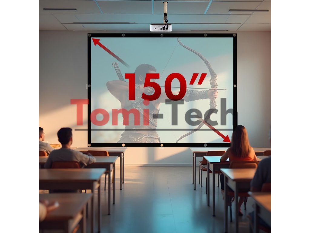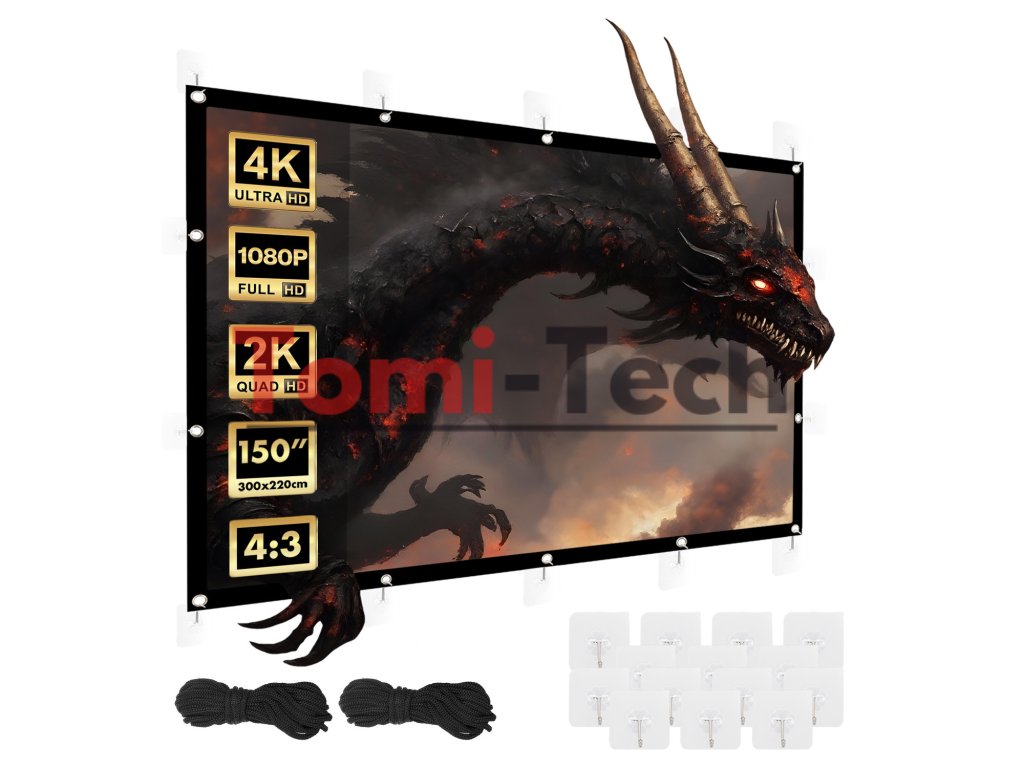 Toto pôsobivé 150-palcové (300 x 220 cm) plátno je ideálne pre náročných používateľov. Je určené pre veľké priestory, podujatia, špičkové domáce kiná a prezentácie pre veľké publikum. Táto veľkosť ponúka nielen veľkolepú viditeľnosť, ale aj vynikajúci pocit ponorenia sa do záberu – a to aj pri veľkom počte divákov. Ideálne pre aplikácie, kde je dôležitý faktor „wow“.