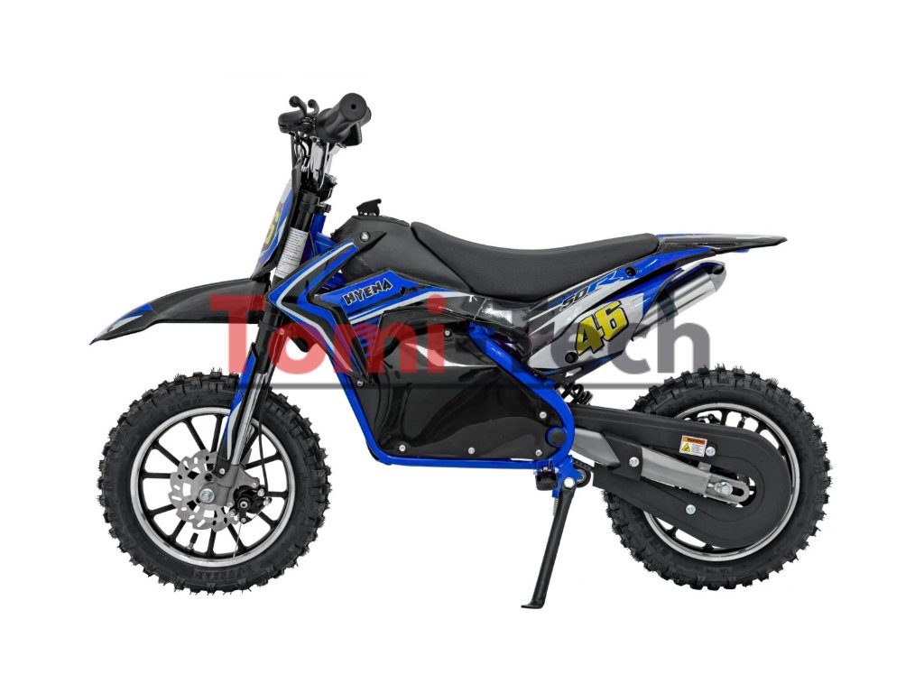 Detská elektrická motorka má nafukovacie kolesá s hrubým dezénom a motor s výkonom 500W . Medzi vybavenie patrí predné aj zadné kotúčové brzdy a mäkké vodotesné sedadlo .