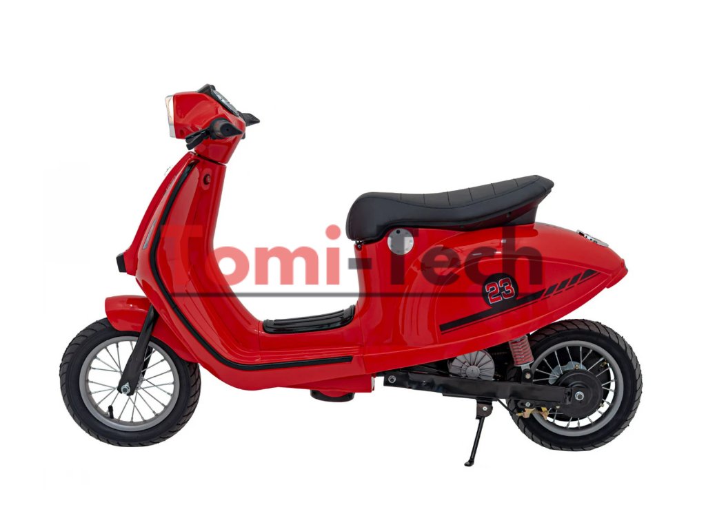 Elegantná a bezpečná kolobežka pre deti s retro dizajnom a skvelou funkcionalitou. Vhodná pre zábavu a pohodlnú jazdu, ideálna voľba pre mladých jazdcov.Výkonný motorKolobežka je poháňaná silným 350W motorom, ktorý poskytuje plynulú a energickú jazdu.Retro štýl a žiarivo červená farba robia z tejto kolobežky módny doplnok každého mladého jazdca. Vstavaný audio systém s podporou MP3, Bluetooth a FM rádia zabezpečuje, že si jazdu užijete naplno. Kolobežka Retro Červená 23 je ideálna pre mladých jazdcov, ktorí túžia po štýlovej a bezpečnej jazde. Táto žiarivo červená kolobežka je vybavená výkonným 350W motorom a dvojitými 12V batériami, ktoré zabezpečujú dlhotrvajúcu zábavu. Je vyrobená z kvalitných materiálov, čo zaisťuje odolnosť a stabilitu na rôznych povrchoch.Bezpečnosť je na prvom mieste vďaka LED svetlám, pevnému rámu a bezpečnému štartu na tlačidlo. Kolobežka ponúka pohodlné sedenie s čiernym eco koženým sedadlom, ktoré poskytuje optimálny komfort.Užite si svoje obľúbené melódie s vstavaným audio panelom, ktorý podporuje MP3 a Bluetooth. Prieskum miest a vonkajších priestorov nikdy nebol zábavnejší a štýlovejší!