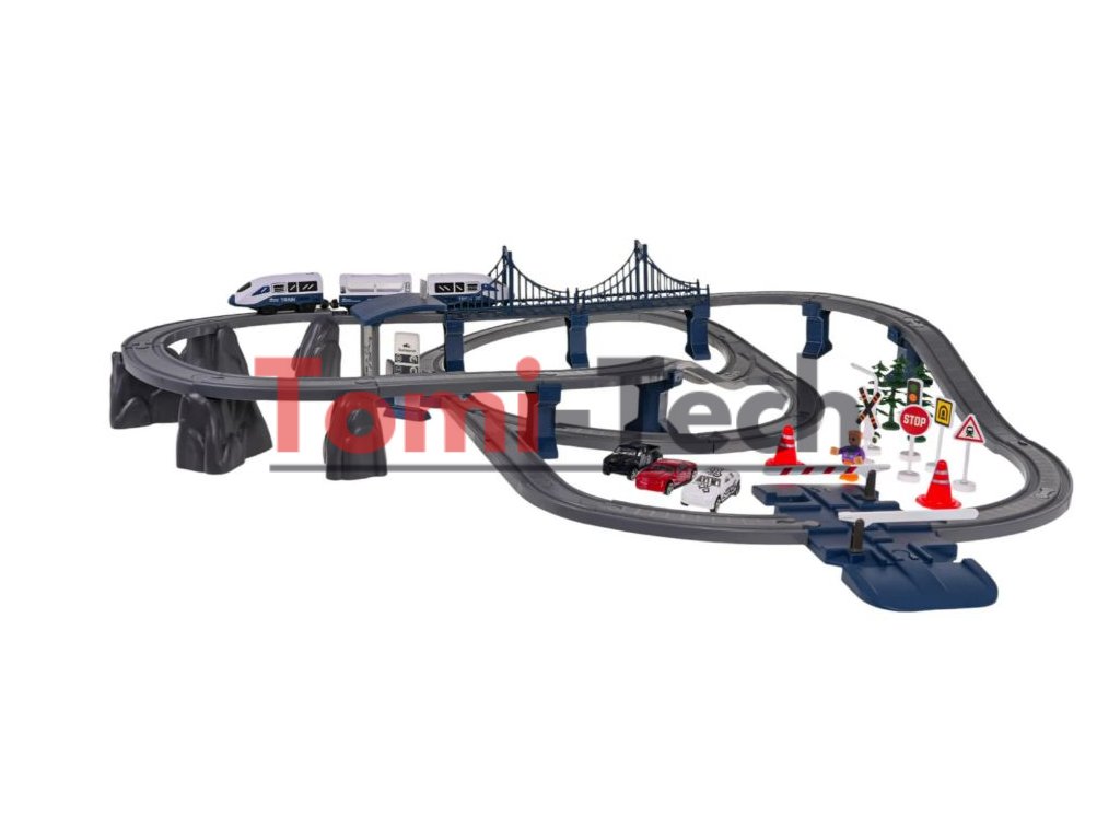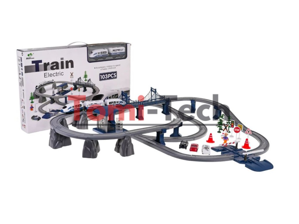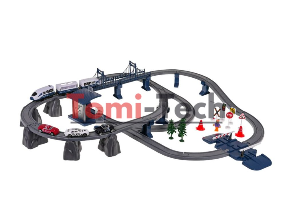 Dobre vybavená sada koľají, vláčikov a príslušenstva pre deti od 3 rokov . Súprava je vyrobená z najkvalitnejšieho plastu a je robustná a odolná. Obsahuje až 103 prvkov: Stavebné prvky dvojposchodovej koľaje, vláčik, nádražie so zvukovými a svetelnými efektmi, most, závoru, dopravné značky, autíčka a figúrku chlapca.