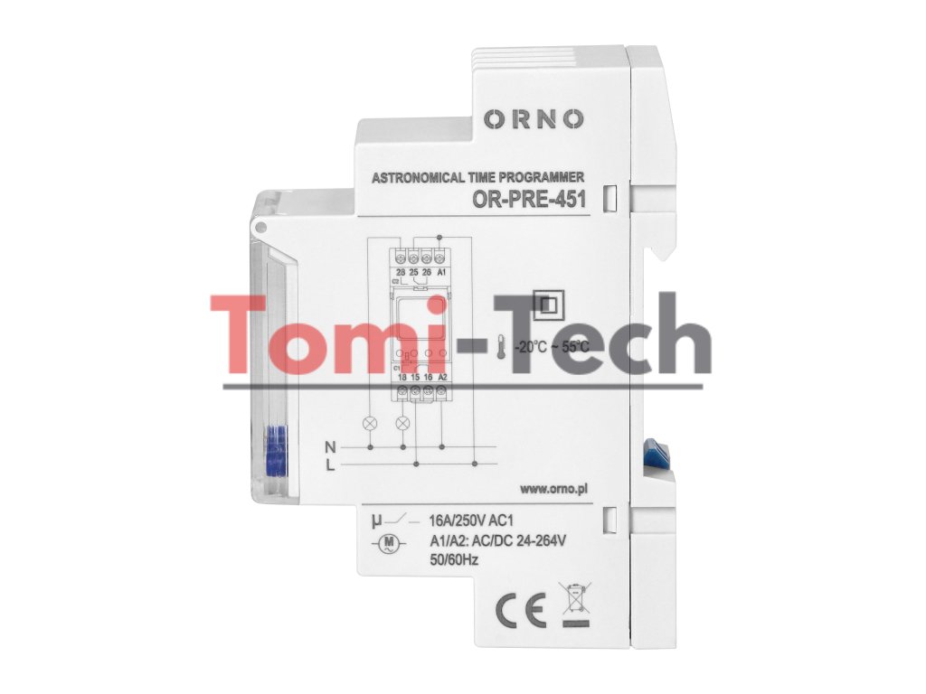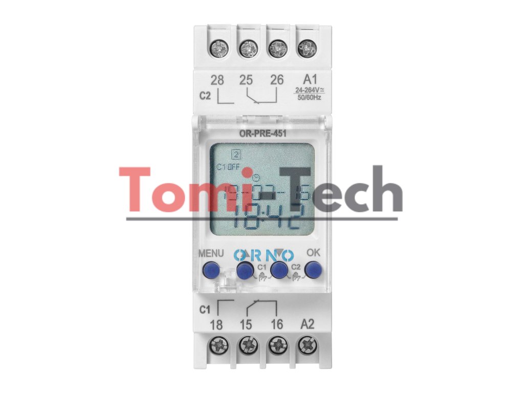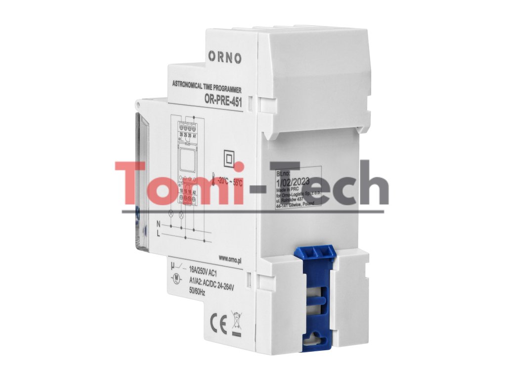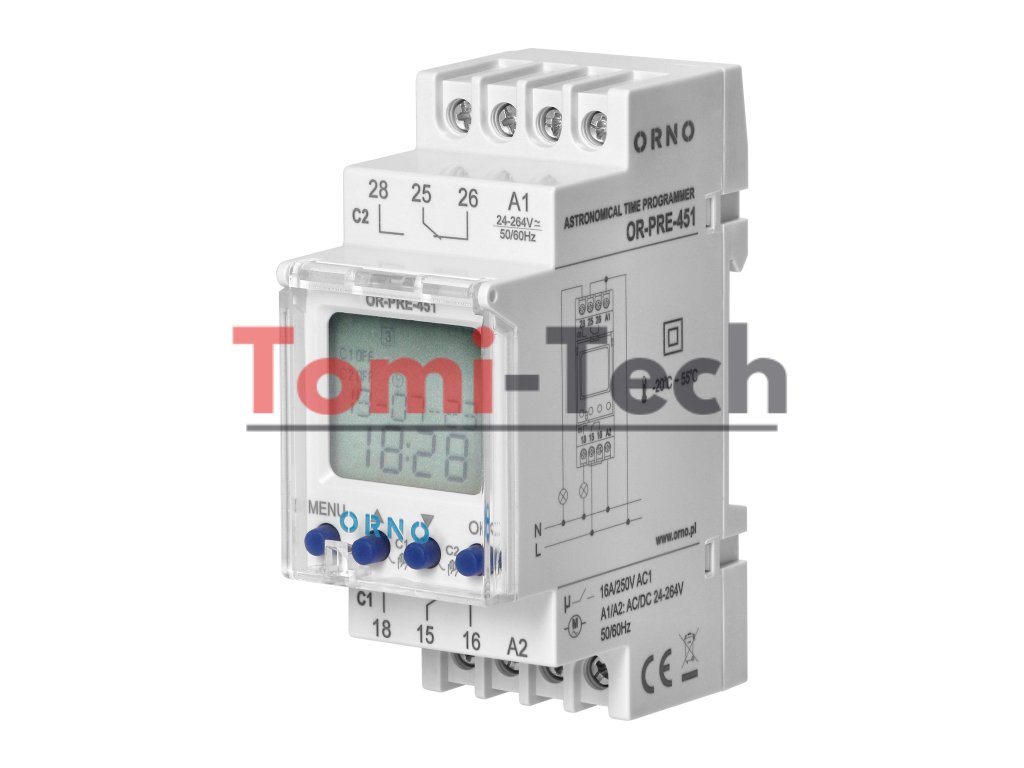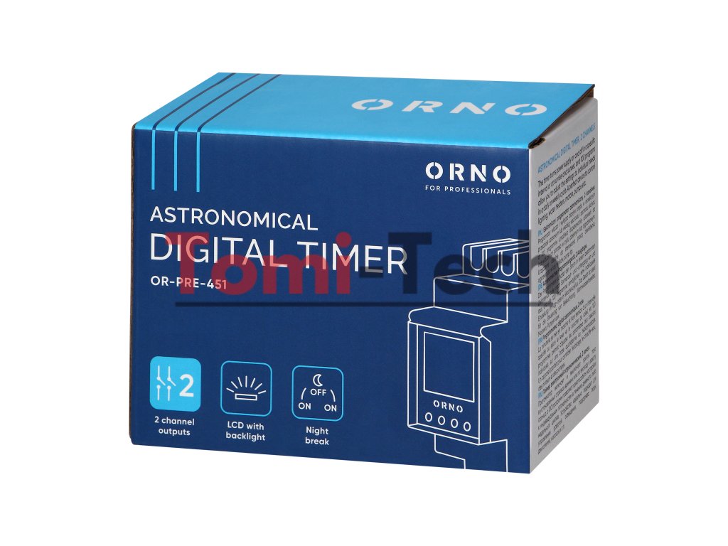 Elektronický astronomický a časový programátor, 100 programov, 3 jazyky menu, 2 reléové výstupy max. 16A/230V, šírka 2 moduly, DIN TH-35mmDodatočné parametre