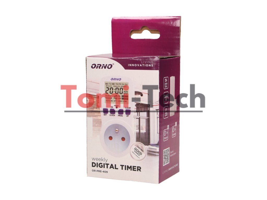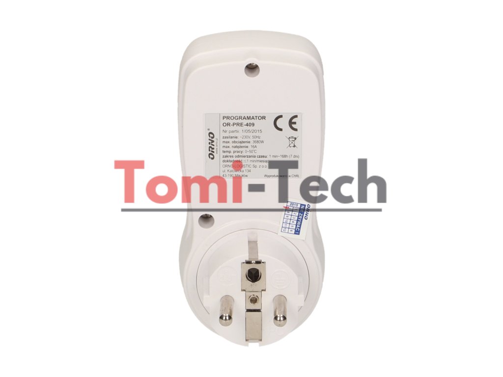 Programátor s veľkým LCD displejom na nastavenie časov zapnutia a vypnutia elektrických zariadení, ako sú osvetlenie, ohrievače vody, reklamy atď. Zariadenie má: 16 časových programov, manuálne alebo náhodné zapnutie/vypnutie, 16 kombinácií dní v týždni, funkciu letného a zimného času, funkciu odpočítavania.Dodatočné parametre