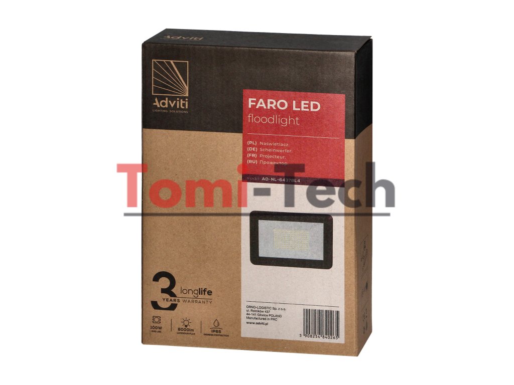 LED reflektor FARO 100W, 8000lm, IP65, 4000K, hliník + skloDodatočné parametre
