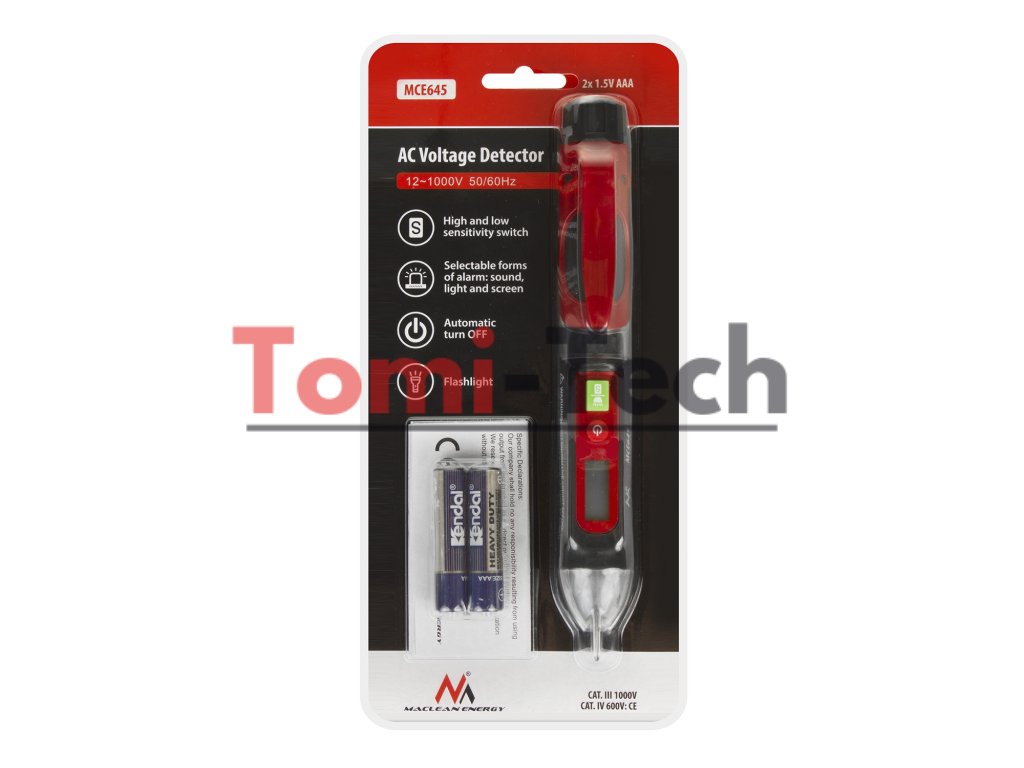 Bezkontaktný detektor napätia Fazer Maclean, detektor, podsvietený displej, vstavané svietidlo, 12 – 1000 V, MCE645