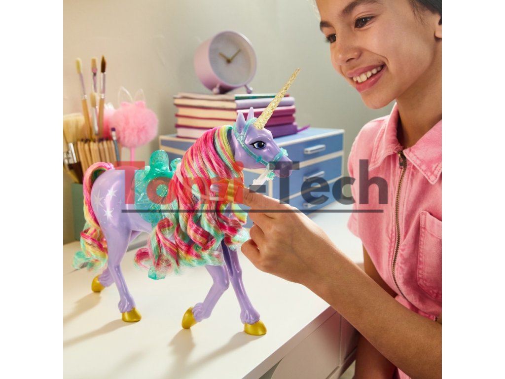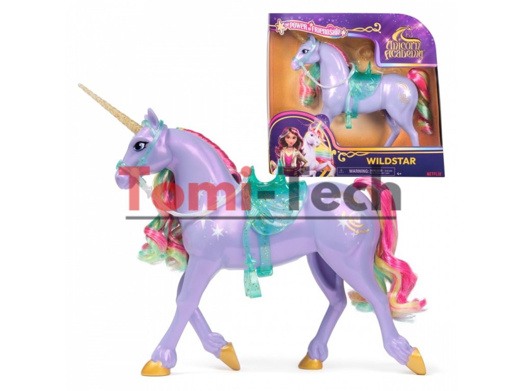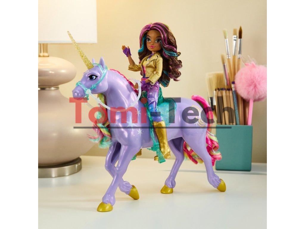 Oslavujte silu priateľstva v hre Unicorn Academy so Sofiiným jednorožcom Star. Táto 28 cm veľká hračka jednorožca, inšpirovaná animovaným seriálom NETFLIX a bestsellerovou knižnou sériou, kde priateľstvo vládne, oživuje štedrú Star. Krásne detailná Star má na boku kovové znaky sily Svetelnej mágie, trblietavý roh, farebnú hrivu a chvost a odnímateľnú priesvitnú uzdu a sedlo. Jemne pohnite Hviezdnou hlavou, aby ste odhalili jej osobnosť a znovu prežili magický zážitok puto medzi jazdcom na jednorožcoch a Sofiou. Počešte Hviezdinu mäkkú hrivu a chvost a vydajte sa na dobrodružstvo, aby ste ochránili Ostrov jednorožcov a jeho mágiu. Ak chcete zažiť viacero spôsobov, ako zažiť Unicorn Academy so svojimi obľúbenými postavami, nájdite všetky bábiky a ich jednorožce (hračky sa predávajú samostatne) a rozšírte svoj svet. Priateľstvá a magické putá medzi študentmi Unicorn Academy a ich jednorožcami podnietia nekonečnú fantáziu. Hračky Unicorn Academy sú skvelými darčekmi na sviatky alebo špeciálne príležitosti pre deti, ktoré milujú hračkárske jednorožce a kone, bábiky a doplnky, domčeky pre bábiky, zberateľské predmety, plyšové hračky a ďalšie. Prineste si domov kúzlo Unicorn Academy s hviezdou Sily priateľstva.