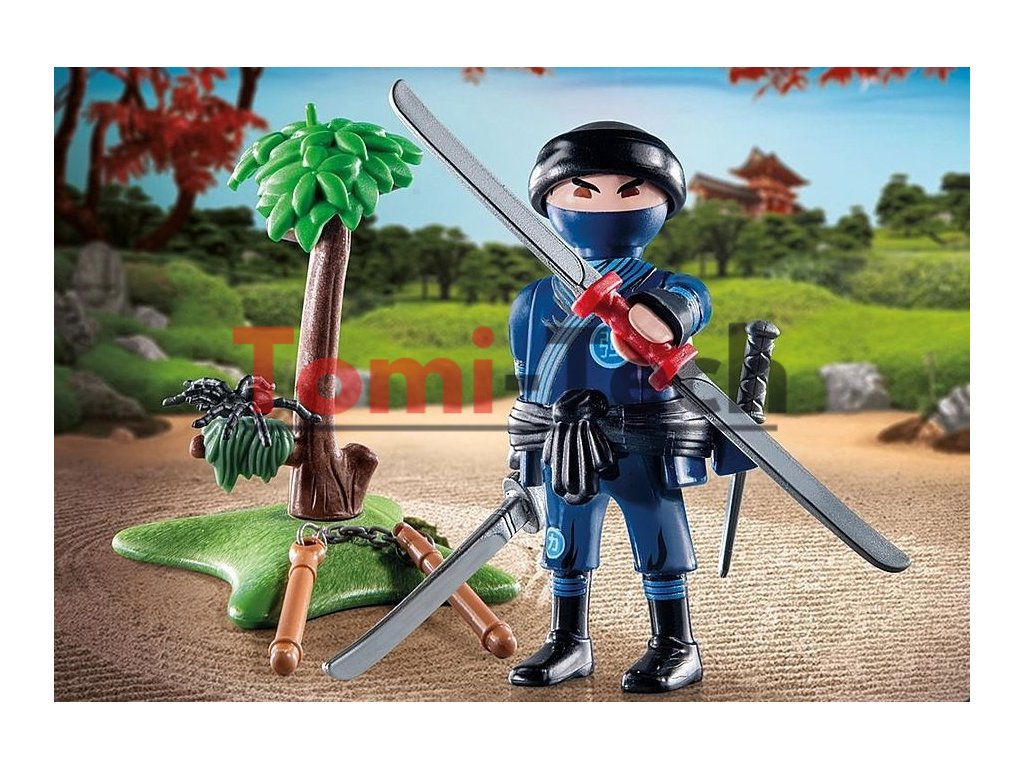PLAYMOBIL Special Plus Ninja so zbraňami vás pozýva do jedinečného sveta bojových umení. Vybavenie umožňuje realistickú rekreáciu cvičení v detskej izbe. Príjemné figúrky PLAYMOBIL Special Plus poskytujú kopec zábavy a sú ideálne pre deti od 4 rokov. S týmito pôvabnými figúrkami sa dá hrať samostatne alebo ich možno integrovať do iných tematických svetov PLAYMOBIL. Vďaka širokej škále príslušenstva ponúkajú sady nekonečné možnosti kreatívnej hry.