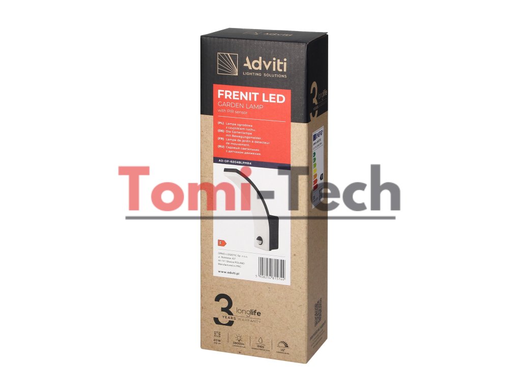 Toto záhradné svietidlo v hliníkovom puzdre s jednoduchým a štíhlym dizajnom nielen efektívne osvetlí akýkoľvek priestor alebo budovu, ale dodá jej aj moderný nádych. Svietidlo sa pýši vysokým stupňom vodotesnosti, vďaka čomu je ideálne na fasády budov, ploty, terasy, altánky alebo vchody do domov či kancelárskych budov. Moderné SMD LED diódy zaručujú vysokú energetickú účinnosť a dlhú životnosť. Frenit má esteticky príjemný zabudovaný snímač pohybu, ktorý ďalej pomáha šetriť elektrinu tým, že svetlá zapína iba v prípade potreby. Svetlo má tiež funkciu stmievania. Svetlo je vybavené matným polykarbonátovým difúzorom pre rovnomerné rozloženie svetla.Dodatočné parametre