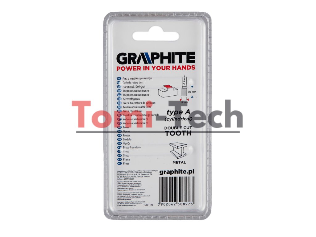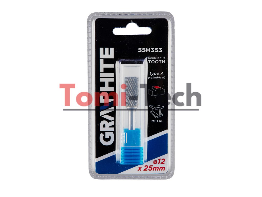 Kovová fréza, typ A - valcová (A 1225), karbid, priemer 12 mm, dvojitý rez, pracovná dĺžka 25 mm, stopka 6 x 45 mm, pre priamu brúsku.Dodatočné parametre