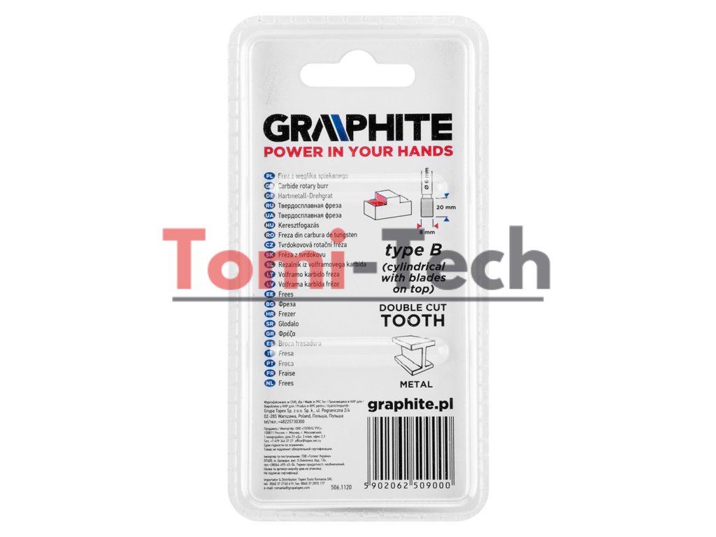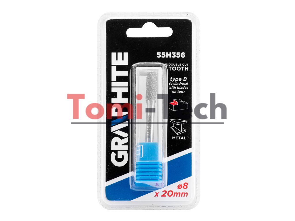 Kovová fréza, typ B - valcová (B 0820), z tvrdokovu, priemer 8 mm, dvojitý rez, pracovná dĺžka 20 mm, stopka 6 x 45 mm, pre priamu brúsku.Dodatočné parametre