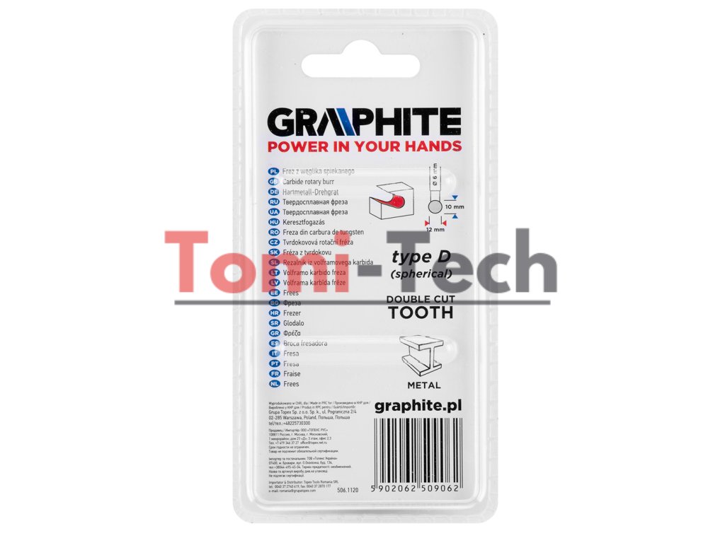 Kovová fréza, typ D - guľový tvar (D 1210), karbid, priemer 12 mm, dvojitý rez, pracovná dĺžka 10 mm, stopka 6 x 45 mm, pre priamu brúsku.Dodatočné parametre