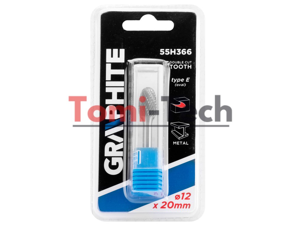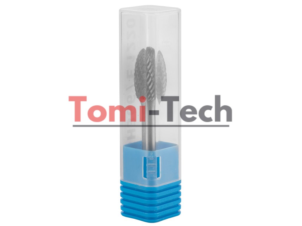 Kovová fréza, typ E - oválna (E 1220), karbid, priemer 12 mm, dvojitý rez, pracovná dĺžka 20 mm, stopka 6 x 45 mm, pre priamu brúsku.Dodatočné parametre