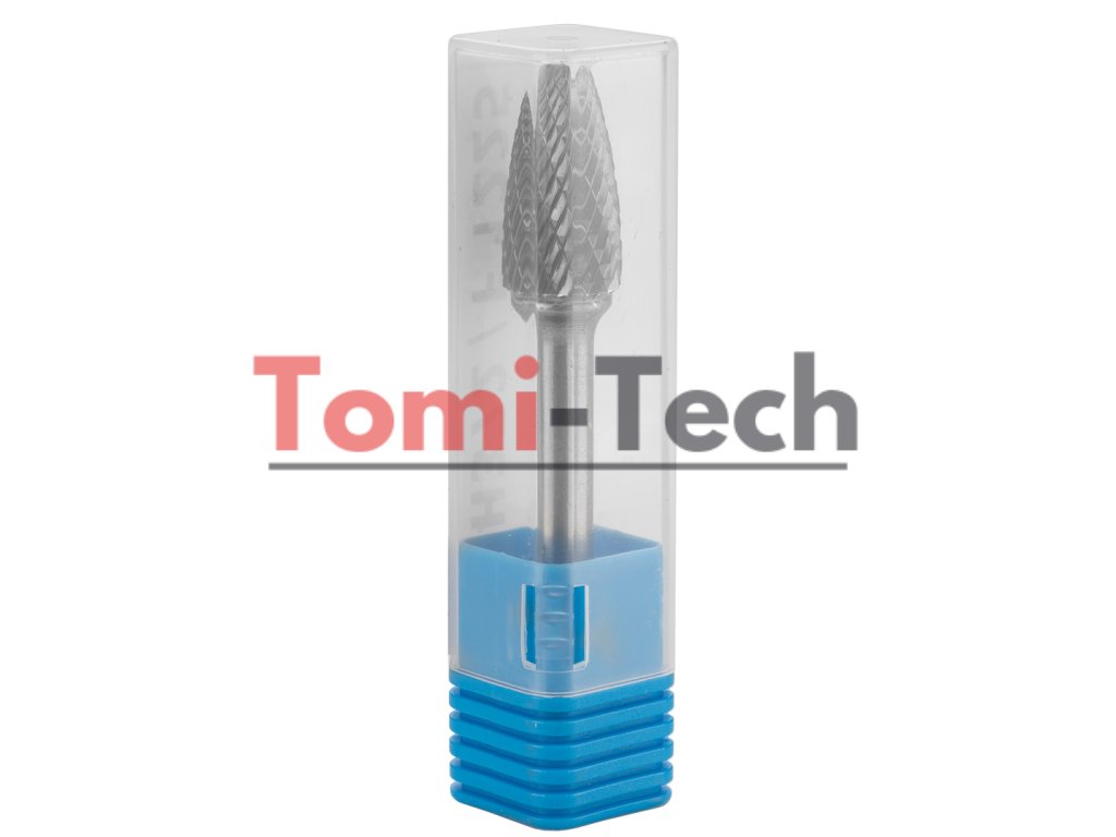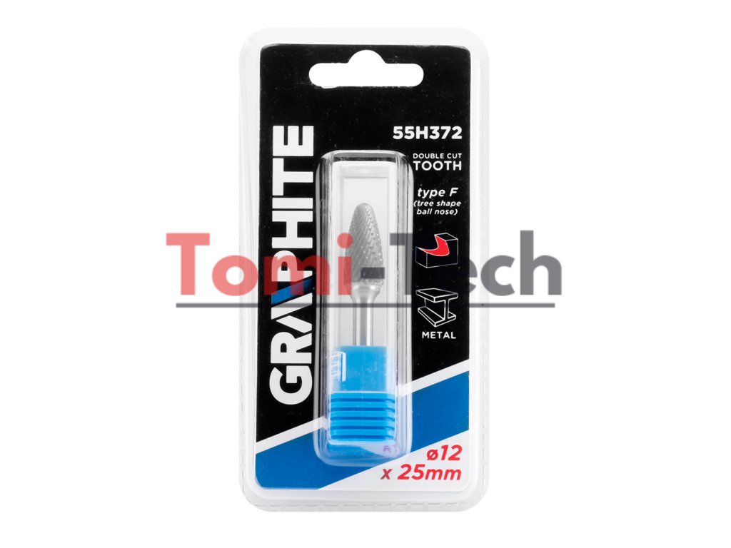 Kovová fréza, typ F - zaoblený hrotový oblúk (F 1225), karbid, priemer 12 mm, dvojitý rez, pracovná dĺžka 25 mm, stopka 6 x 45 mm, pre priamu brúsku.Dodatočné parametre