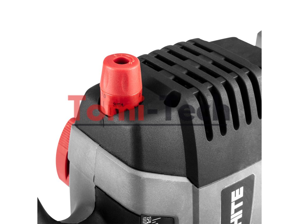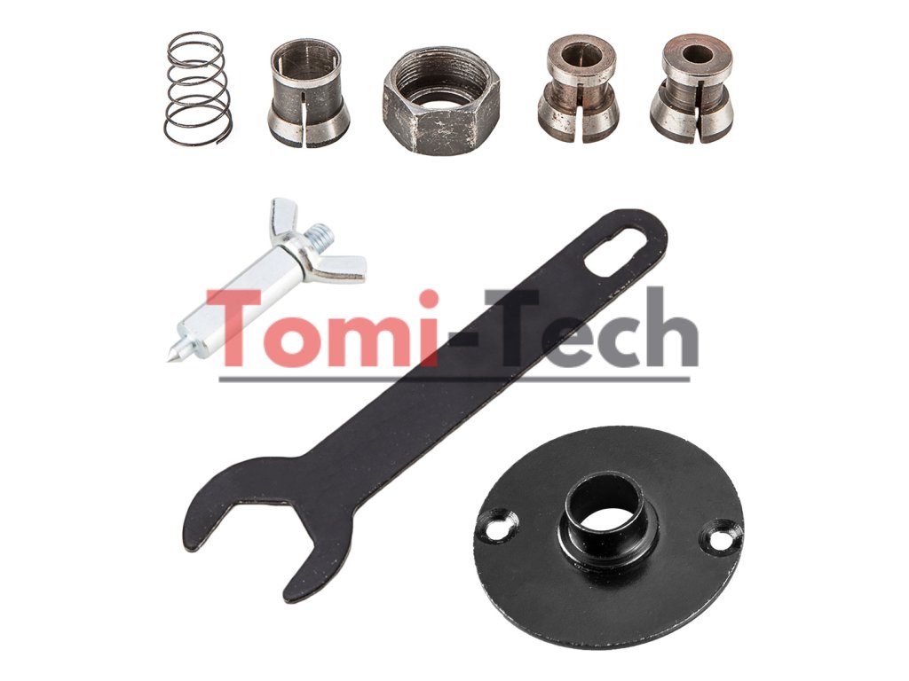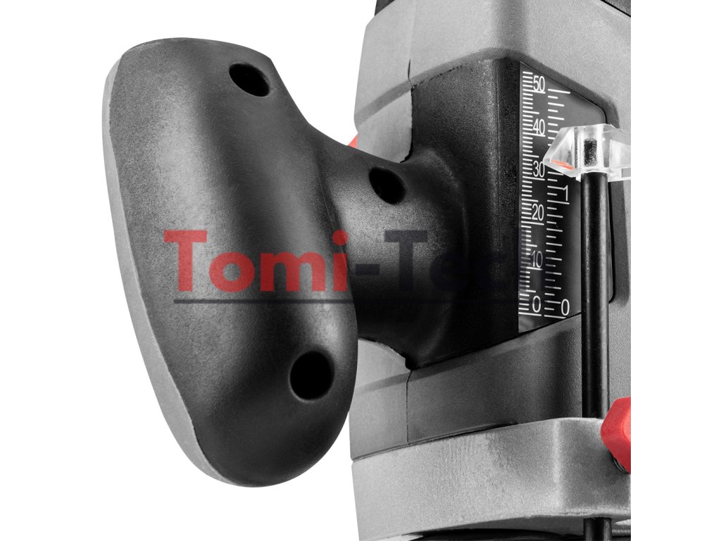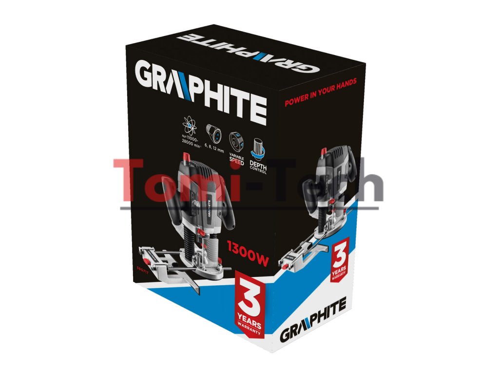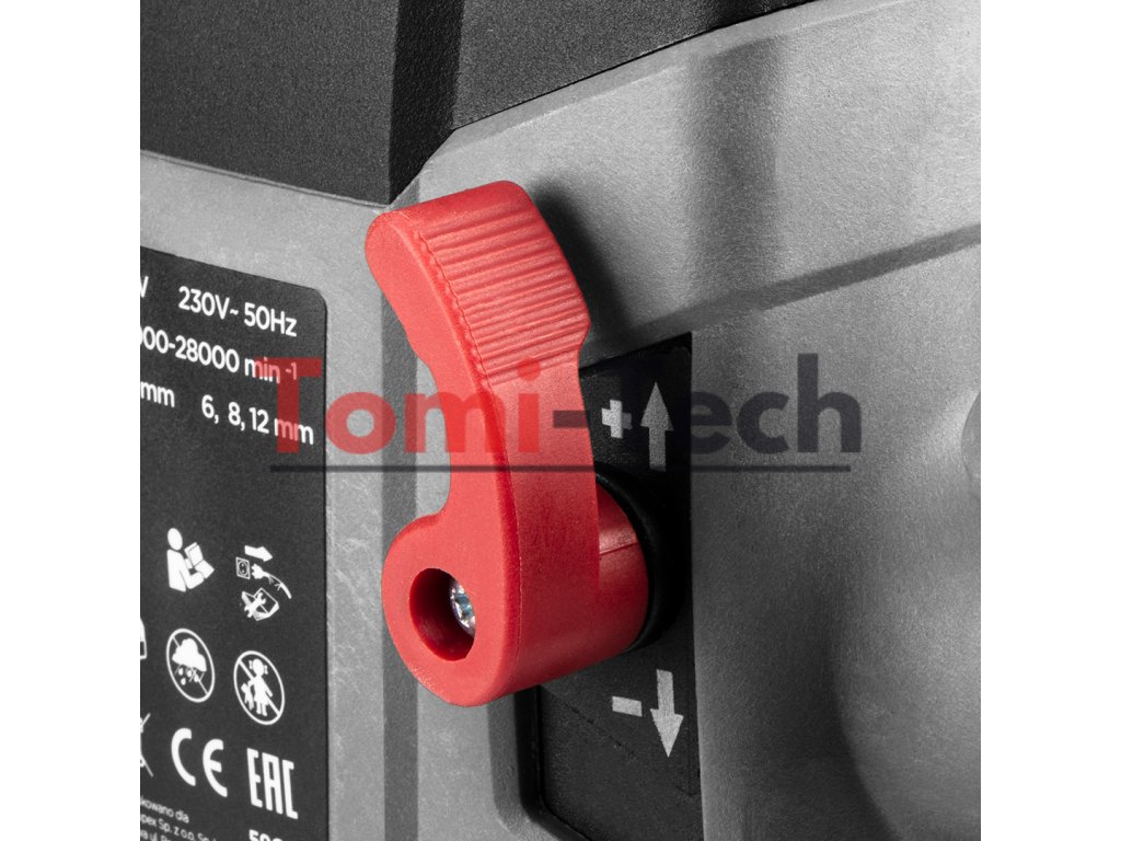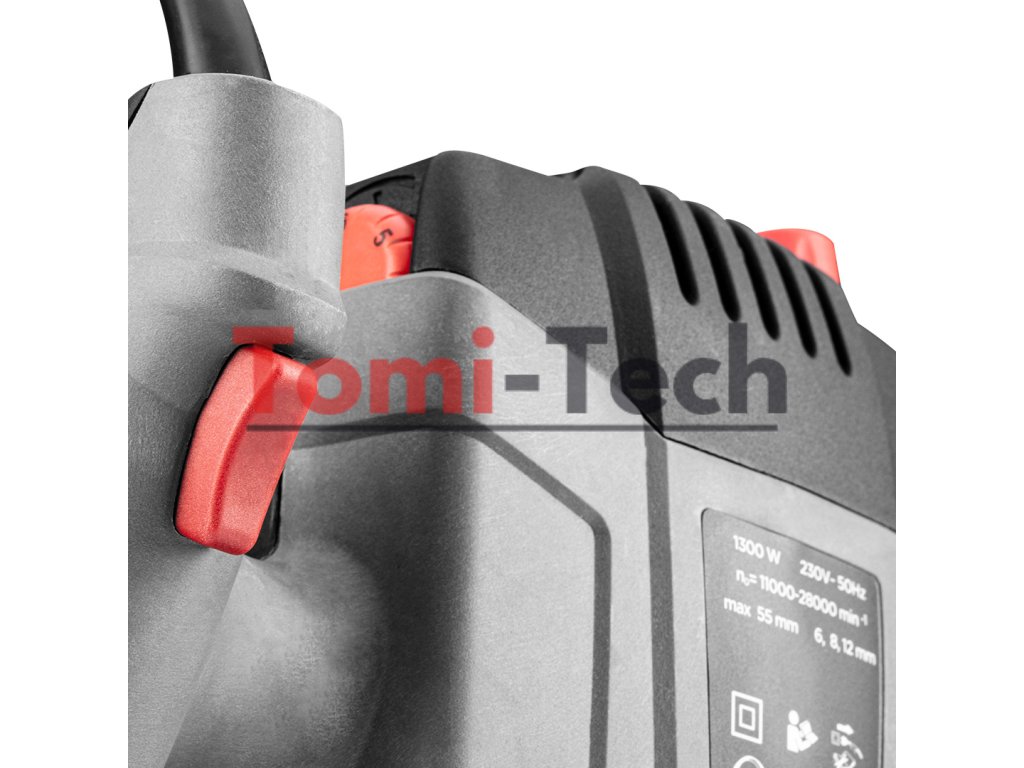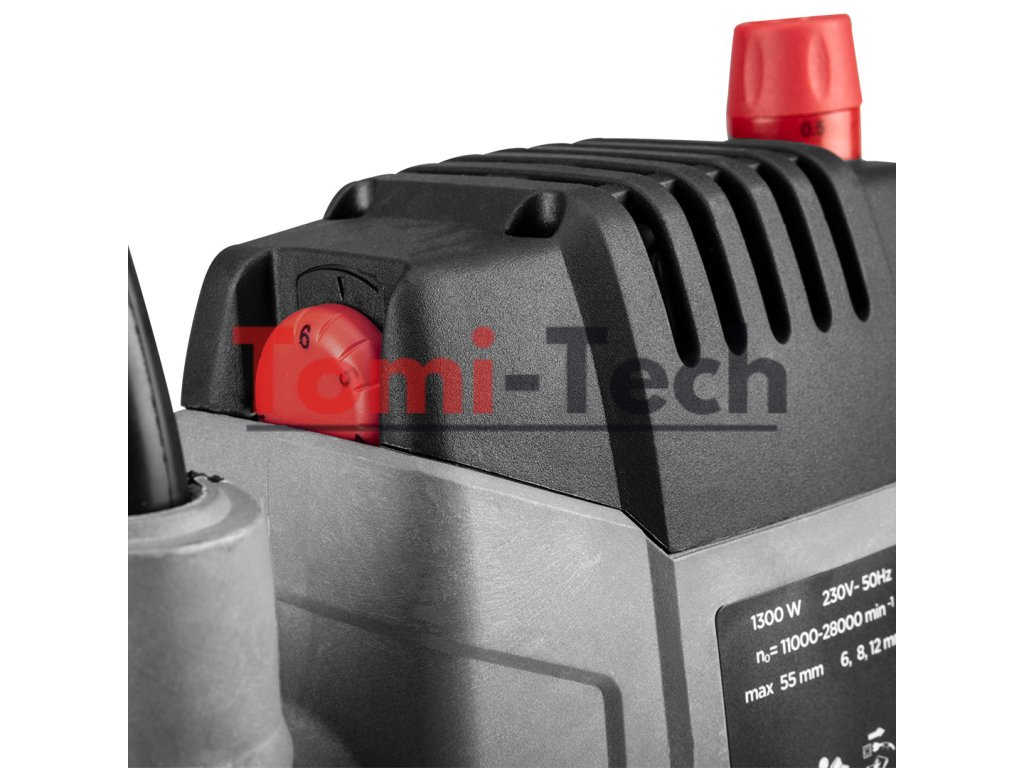Horná fréza 1300 W, skľučovadlo 6, 8, 12 mm, otáčky 11 000 – 28 000 min-1, (D x V) 290 x 280 mm, hmotnosť 3,5 kg, zdvih tela 55 mm, príslušenstvo: 3 klieštiny, vodiace puzdro na kopírovanie podľa šablóny, kruhová fréza, adaptér na odsávanie prachu, paralelný doraz, vidlicový kľúčDodatočné parametre
