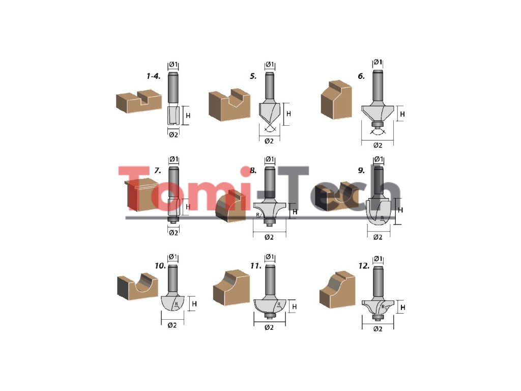 Karbidové frézy, stopka 8 mm, 12-dielna sada, plastový kufríkDodatočné parametre
