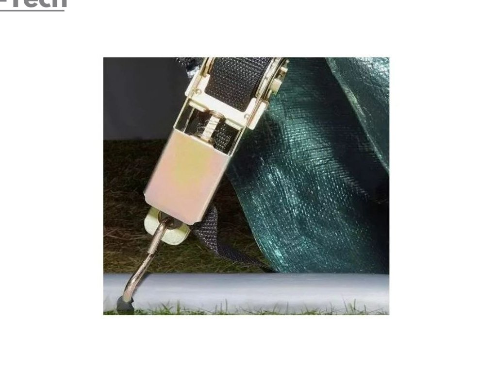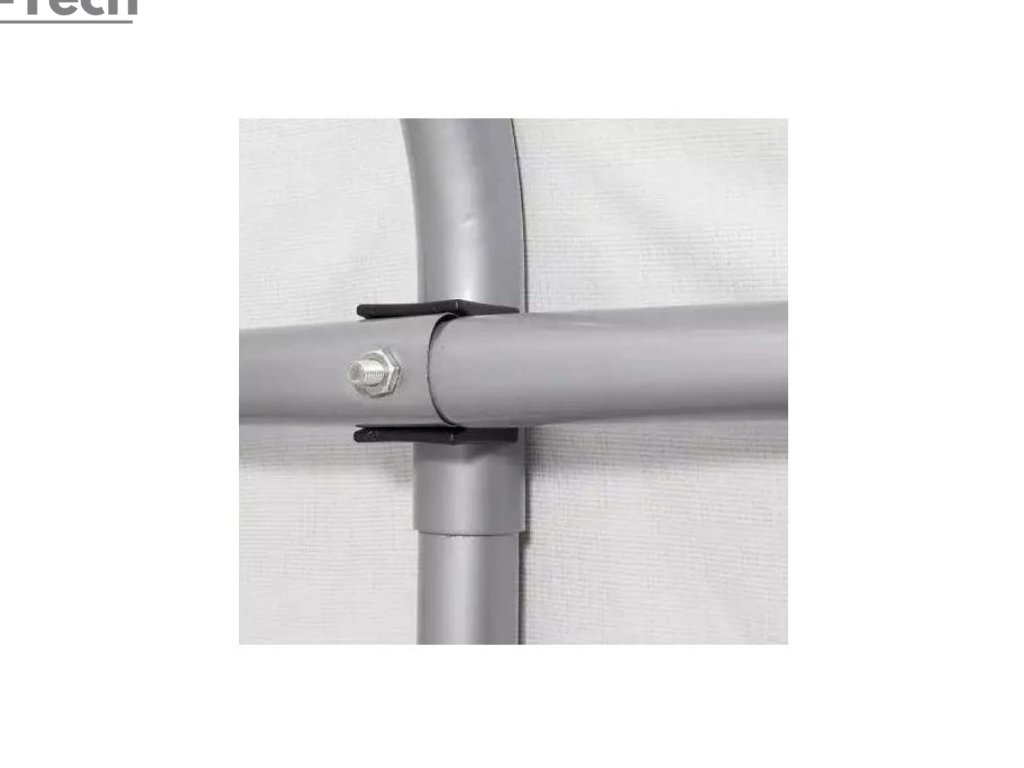 - Strecha je pripevnená ku konštrukčnému profilu pomocou 2 popruhov a 4 západkových mechanizmov; týmto spôsobom strecha pevne priľne k rámu