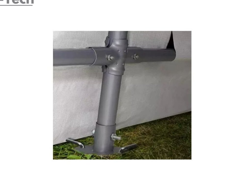 - Bezpečne pripevnené k zemi pomocou odolných kolíkov, ktoré sú súčasťou súpravy