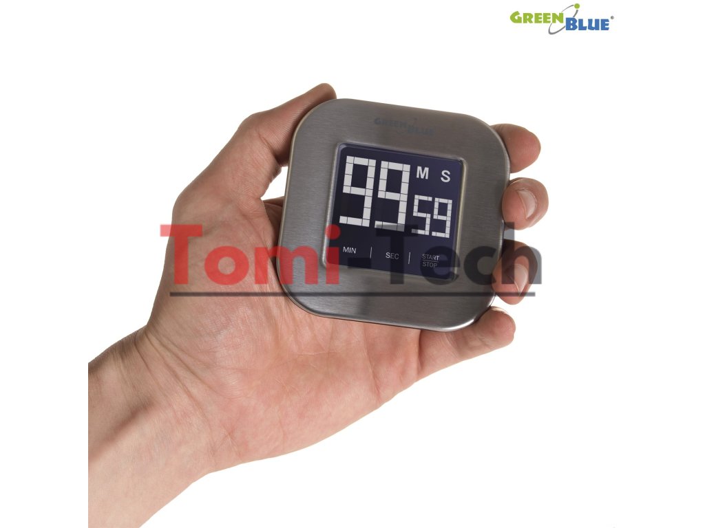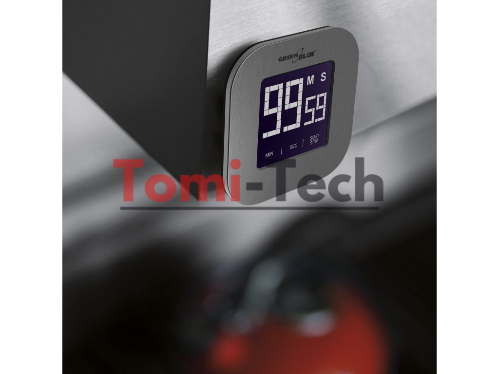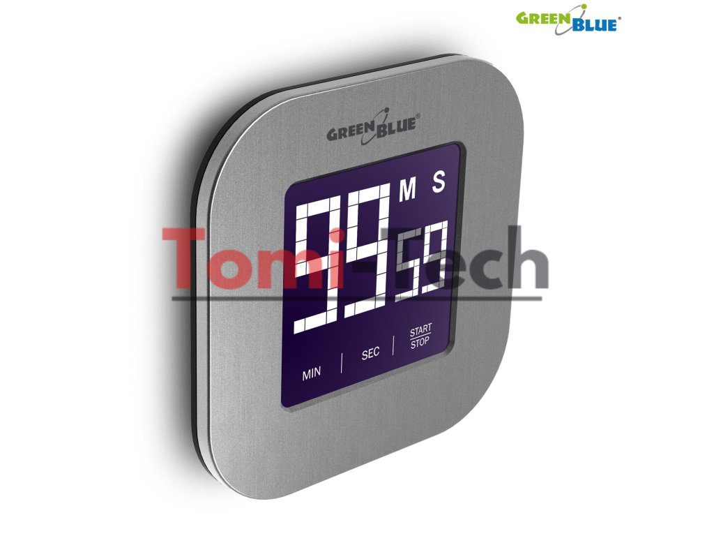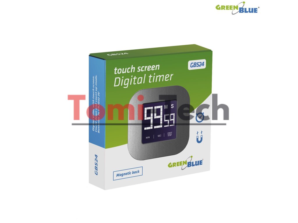 GreenBlue GB524 je praktický a funkčný digitálny časovač a stopky s funkciou stopiek. Je vybavený dvoma silnými magnetmi pre jednoduchú montáž na kovové povrchy. Má tiež výklopný stojan, ktorý umožňuje umiestnenie na kuchynskú linku. Zariadenie má jasnú a čitateľnú dotykovú obrazovku na ovládanie rôznych funkcií. Je veľmi jednoduchý na používanie a umožňuje merať čas od 100 minút až do 100 minút.
