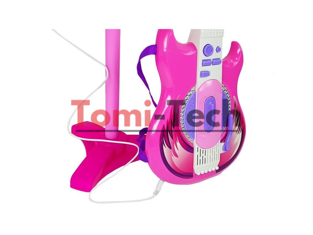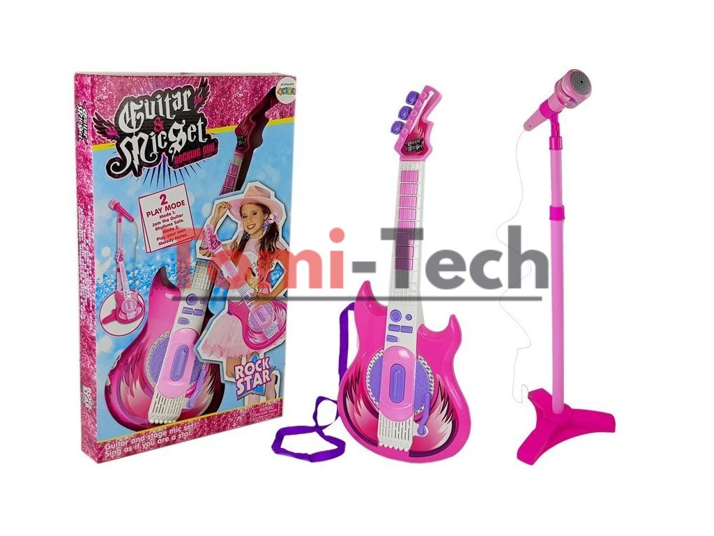 Skvelá sada pre malú hviezdu! Dievčatko sa môže stať rockovou hviezdou. Pomôžeme jej urobiť prvé kroky v hudbe a na pódiu pred publikom. Táto sada pre malého hudobníka je perfektným darčekom. Táto fantastická gitara je ideálna pre najmenších, ktorí milujú vystupovanie pred publikom. Nech sa cítia ako hudobná hviezda na veľkom pódiu. Najväčšou výhodou sady je mikrofón na stojane, vďaka ktorému môžu spievať. Stláčaním tlačidiel na gitare bude môcť dieťa hrať rôzne melódie.