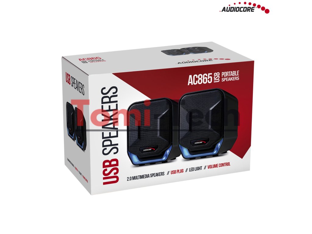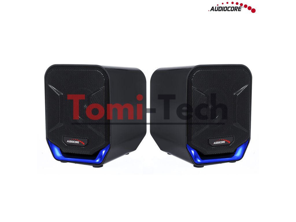 Sada obsahuje- 6W USB Blue&Black počítačové reproduktory Audiocore AC865 B