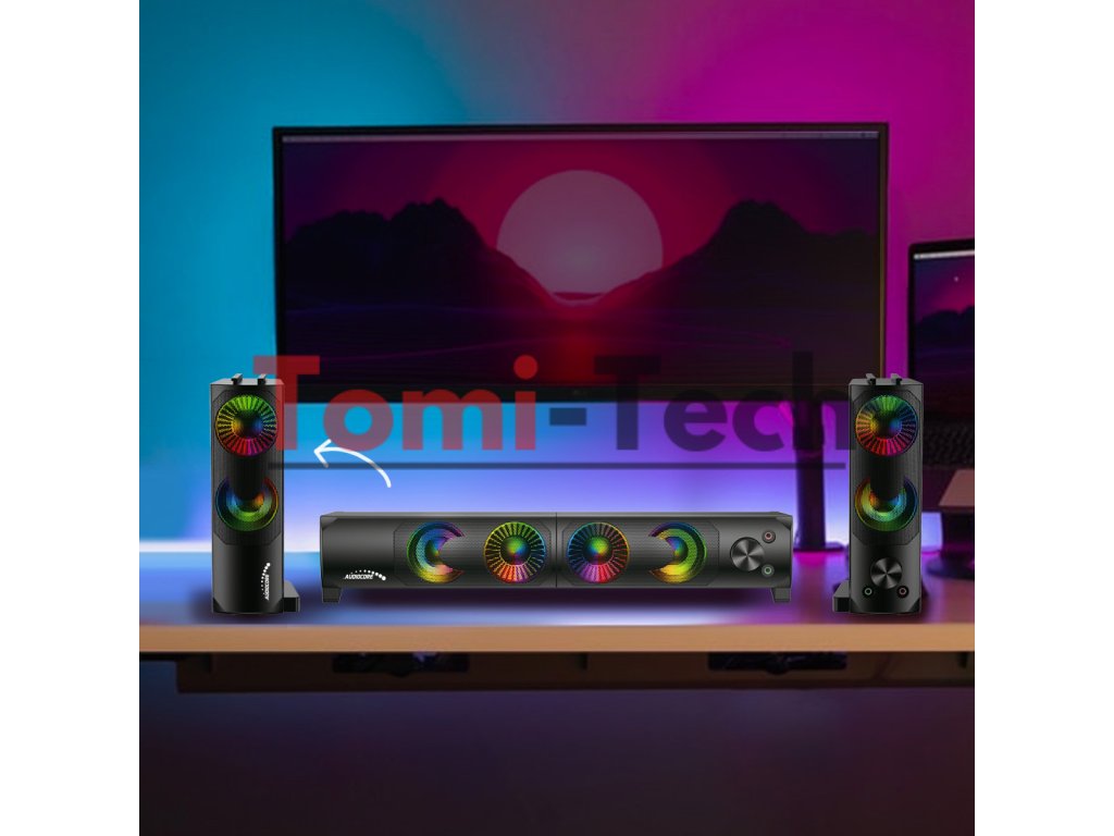 Reproduktory sú navyše vybavené viacfarebným RGB podsvietením.