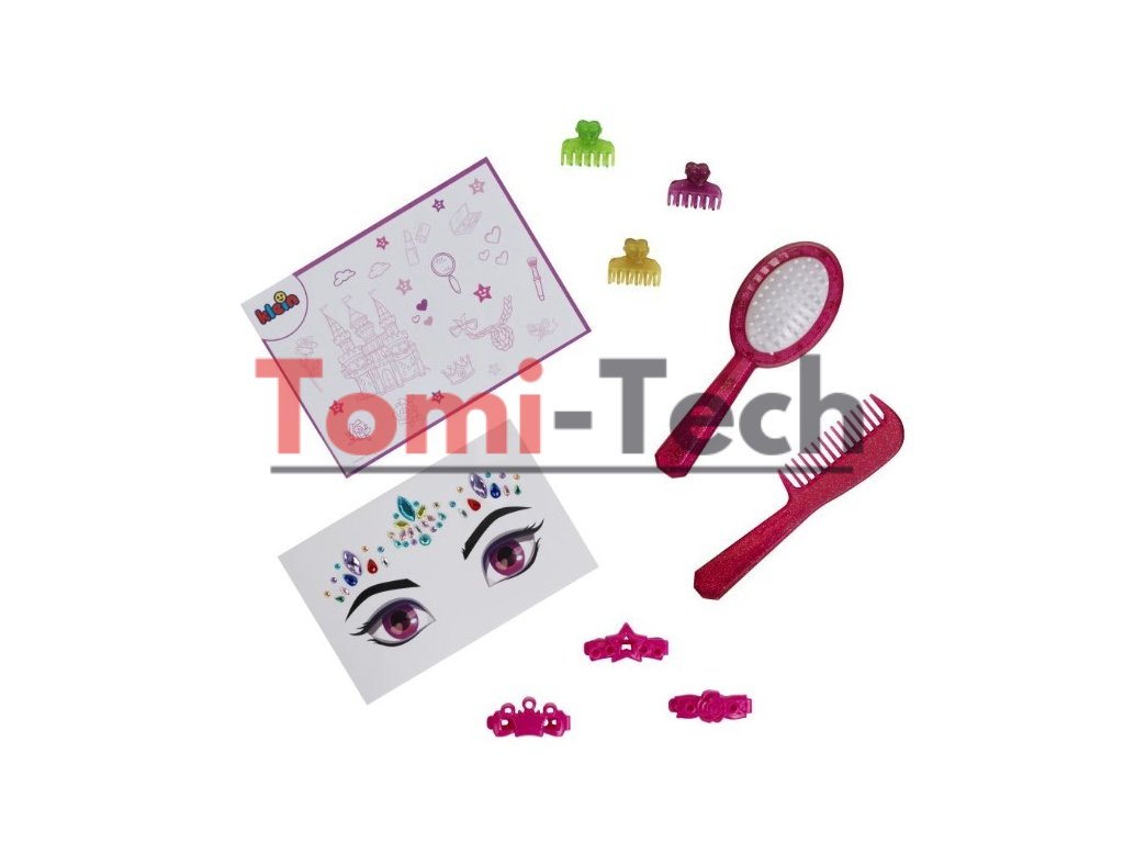 Nielen pre fanúšikov princezien! Nadšenci vlasov a líčenia si tiež zamilujú túto krásnu hlavu a všetko, čo k nej patrí. Koniec koncov, všetky doplnky nielenže vyzerajú presne ako v skutočnom kozmetickom salóne, ale dajú sa použiť aj na vytvorenie prakticky akéhokoľvek líčenia. Okrem kreativity a jemnej motoriky táto hračka rozvíja aj sebavedomie a zmysel pre štýl. S láskou navrhnuté doplnky zahŕňajú tri sponky do vlasov, hrebeň, kefu, hárok s nálepkami a kozmetické srdce naplnené dermatologicky testovanou kozmetikou.