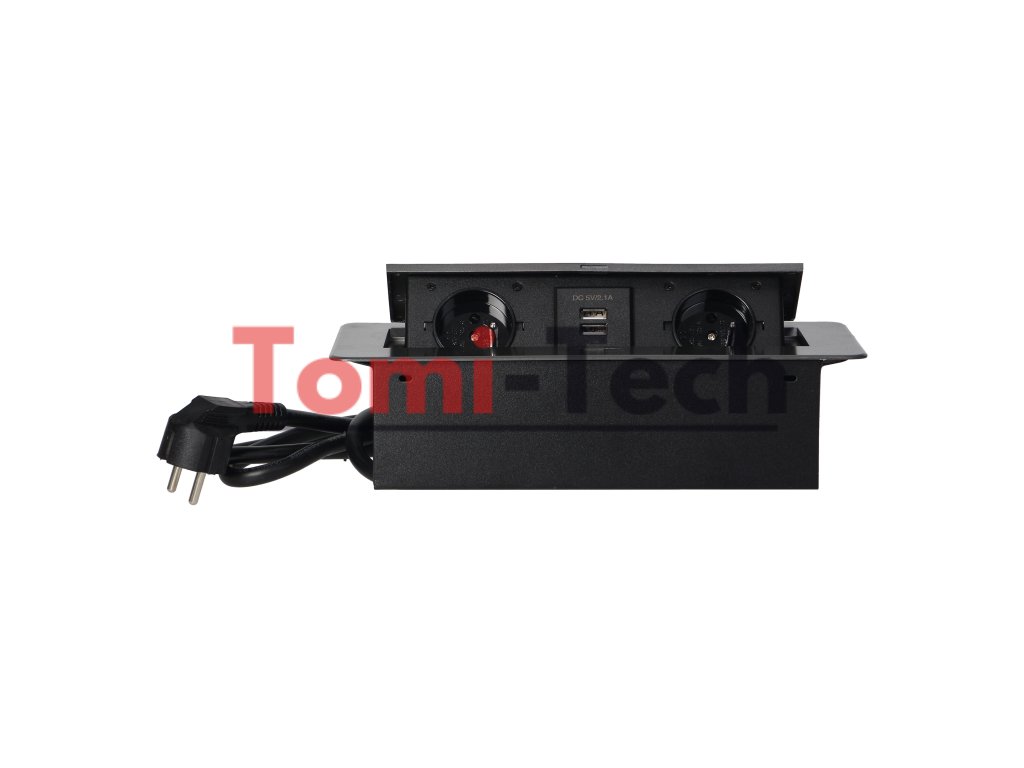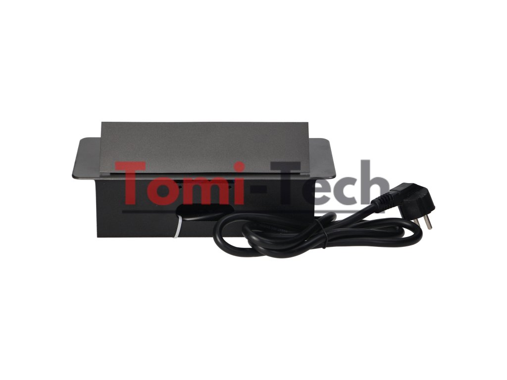 Nábytkové zásuvky zapustené do pracovnej dosky s plochým frézovaným okrajom, USB nabíjačka a 1,5m kábel, 2x2P+Z, 2xUSB, grafitDodatočné parametre