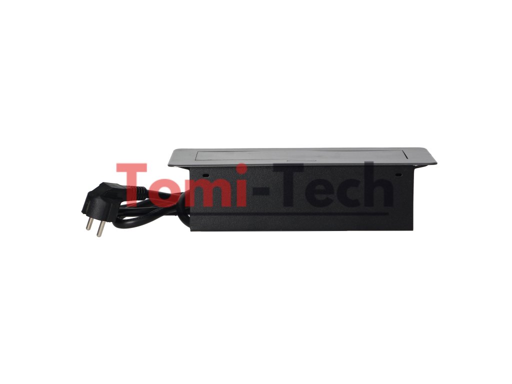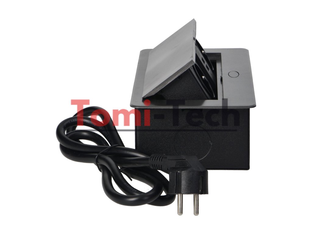 Nábytkové zásuvky zapustené do pracovnej dosky s plochým frézovaným okrajom, USB nabíjačka a 1,5m kábel, 2x2P+Z, 2xUSB, grafit