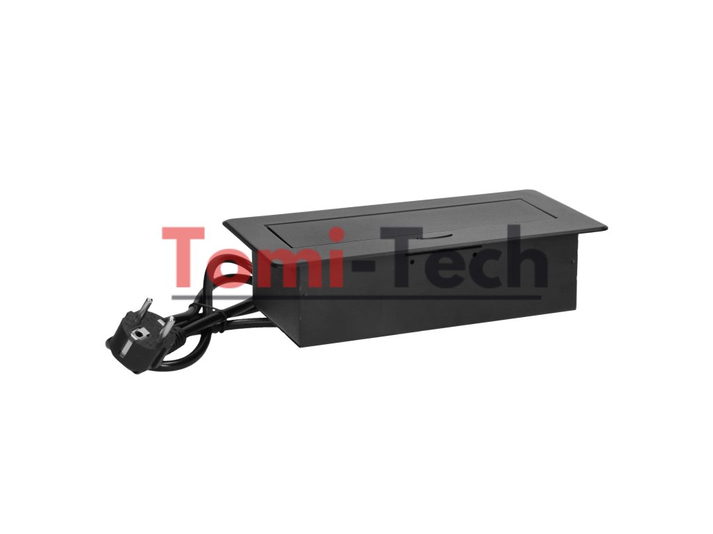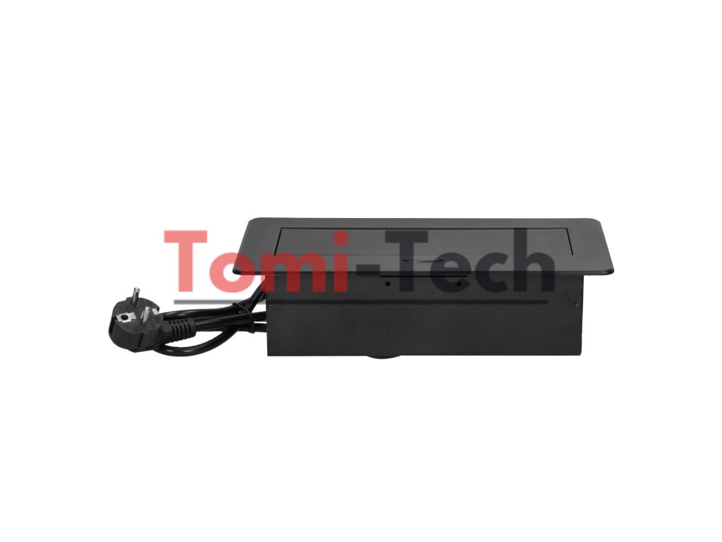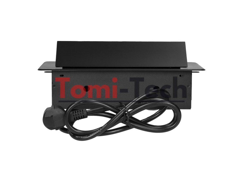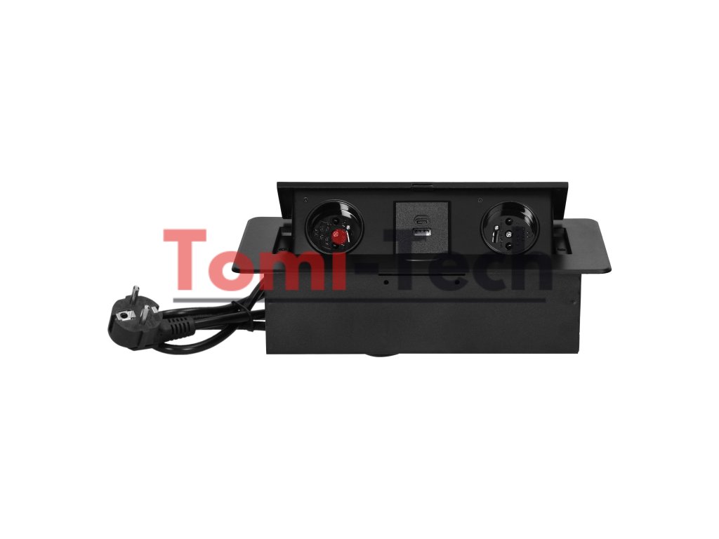 Nábytkové zásuvky zapustené do pracovnej dosky s plochým frézovaným okrajom, USB nabíjačka a 1,5 m kábel, 2x2P+Z, 2xUSB (typ A+C; 3,6A), čierneDodatočné parametre
