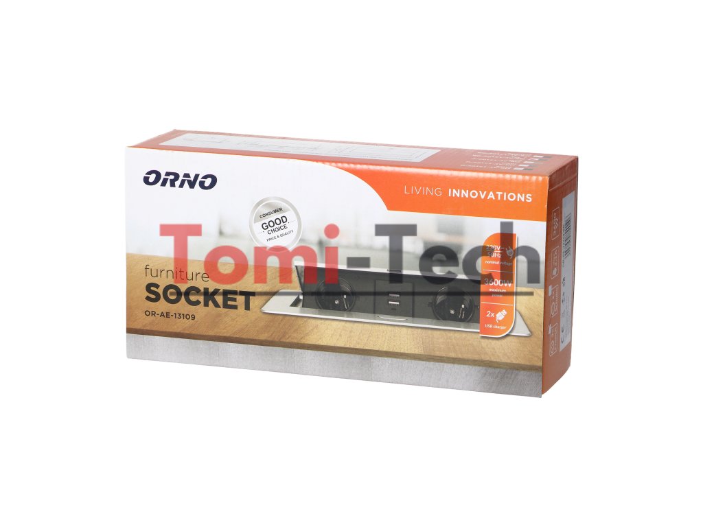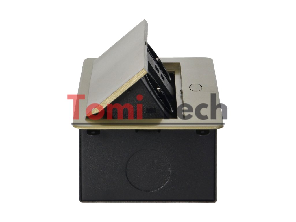 Nábytkové zásuvky zapustené do pracovnej dosky s plochým frézovaným okrajom a USB nabíjačkou, 2x2P+Z, 2xUSB, mosadz