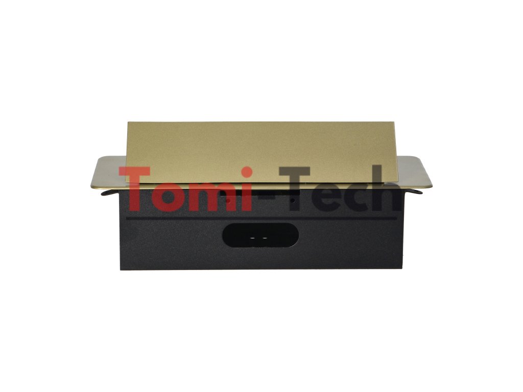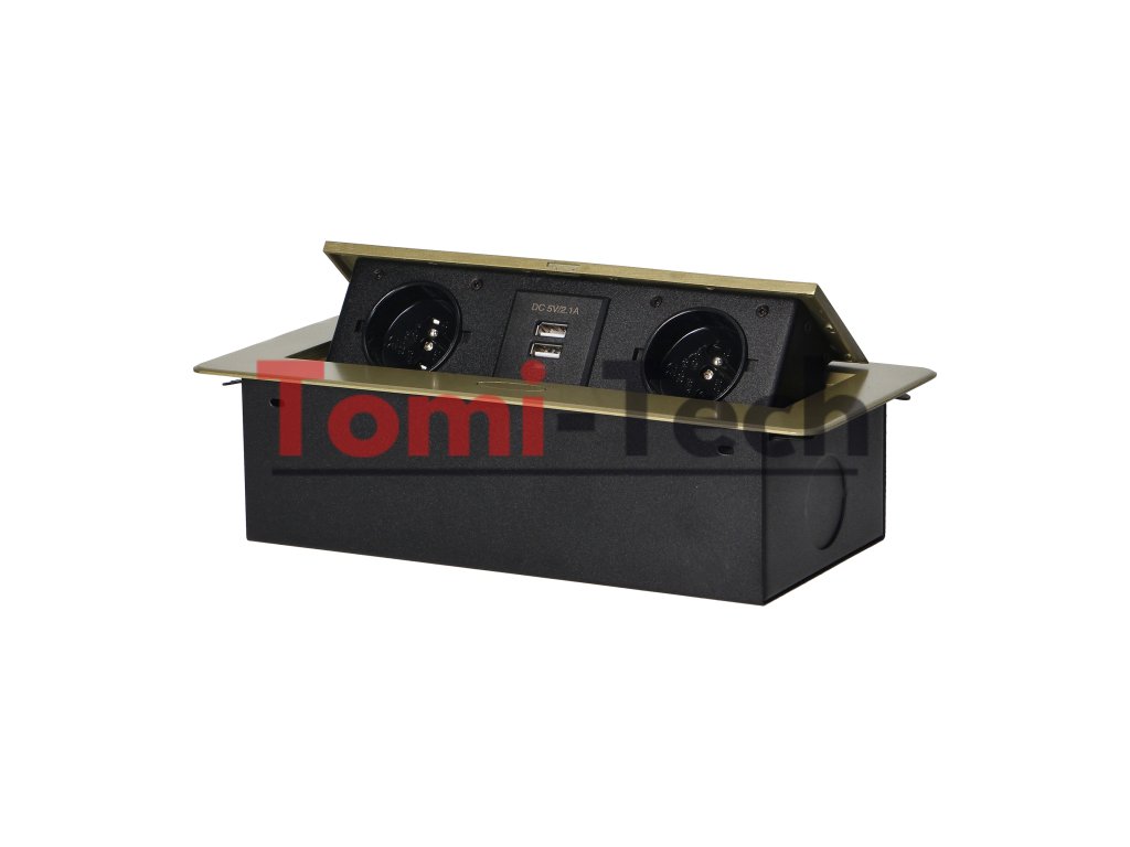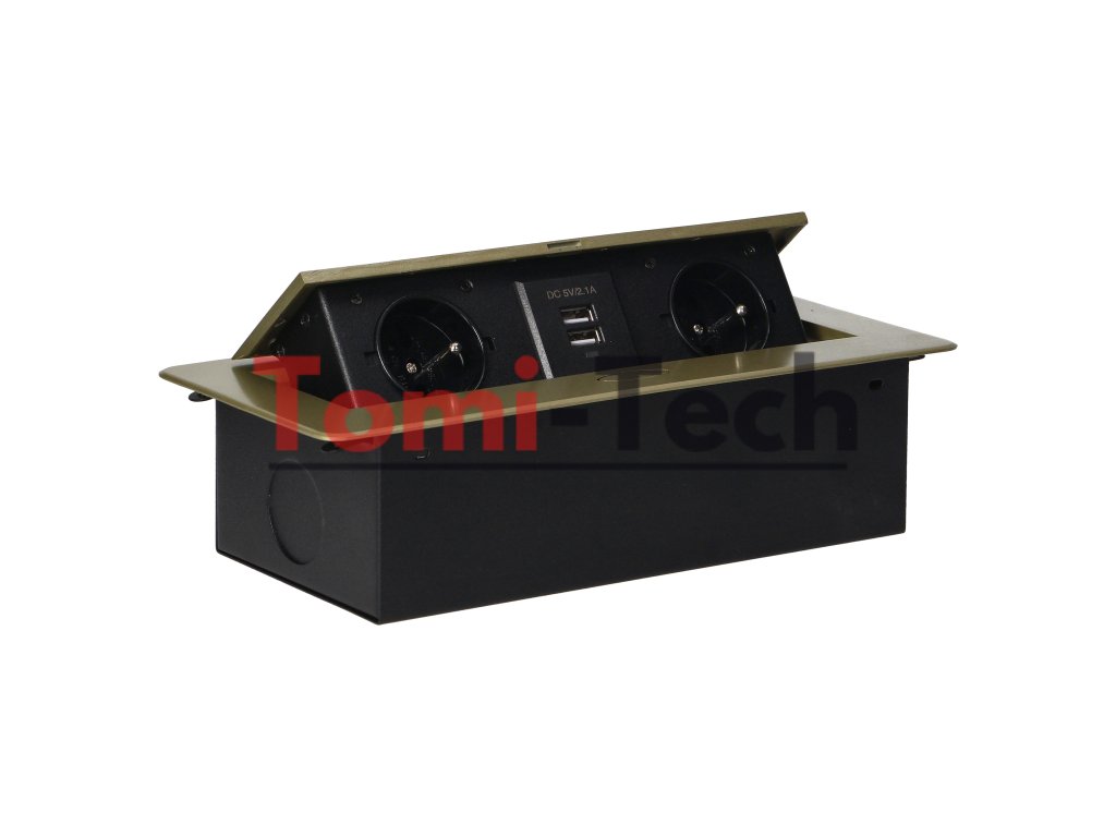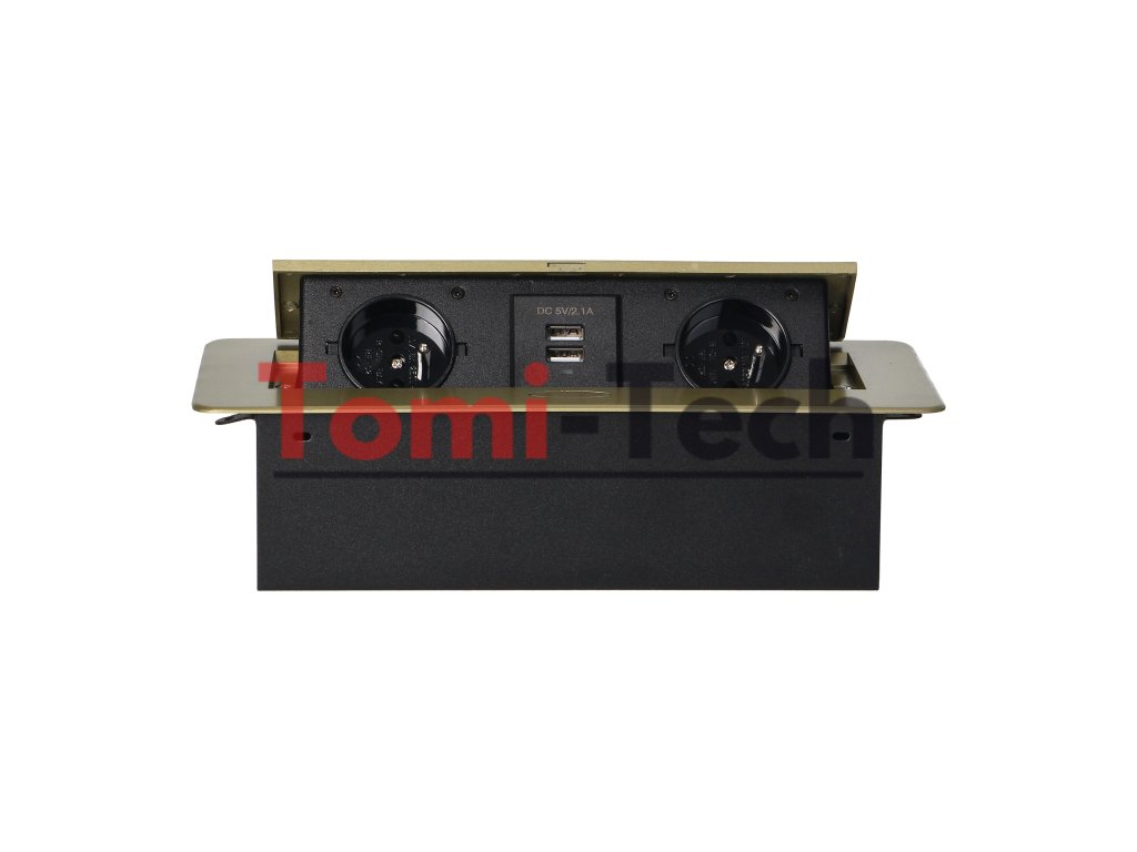 Nábytkové zásuvky zapustené do pracovnej dosky s plochým frézovaným okrajom a USB nabíjačkou, 2x2P+Z, 2xUSB, mosadzDodatočné parametre