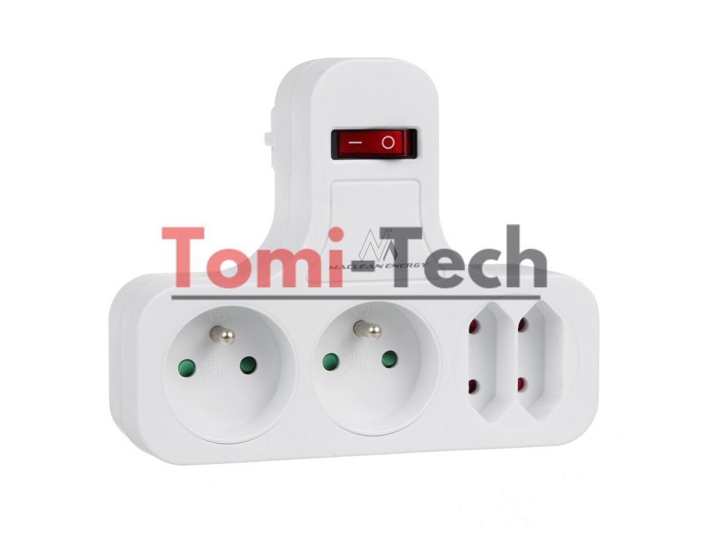 Štvornásobná zásuvka Maclean s vypínačom, stabilizačná nožička, typ E, 2x2,5A, 2x16A, MCE224