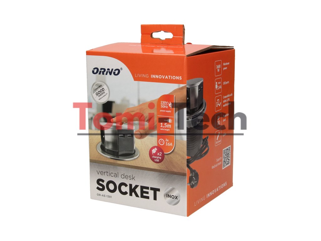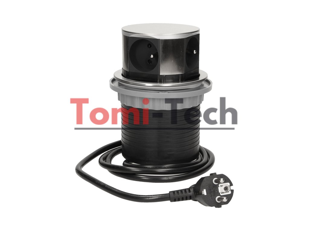Sada troch uzemnených zásuviek s krytmi napájacieho obvodu, pripojených k USB nabíjačke vo výsuvnom puzdre. Toto zariadenie je určené na inštaláciu do konferenčných stolov, kancelárskeho nábytku a kuchynských pracovných dosiek a dodáva sa s 1,5 metrovým káblom. Presný mechanizmus automaticky vysunie panel so zásuvkami po stlačení puzdra. Montáž zariadenia do stola vyžaduje iba otvor s priemerom 10 cm a jeho montážna hĺbka je iba 10 cm. Vyrobené z plastu a nehrdzavejúcej ocele.Dodatočné parametre
