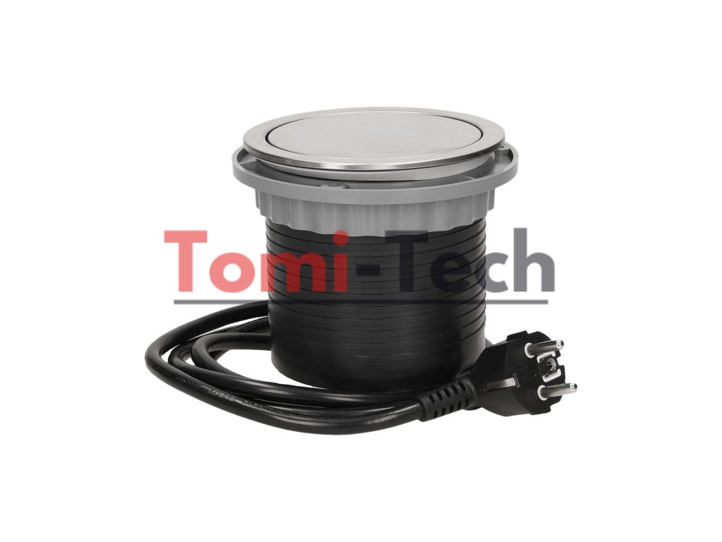 Nábytková zásuvka Ø10cm výsuvná z kuchynskej linky s USB nabíjačkou a 1,5m káblom, 3x2P+Z, 2xUSB, INOX