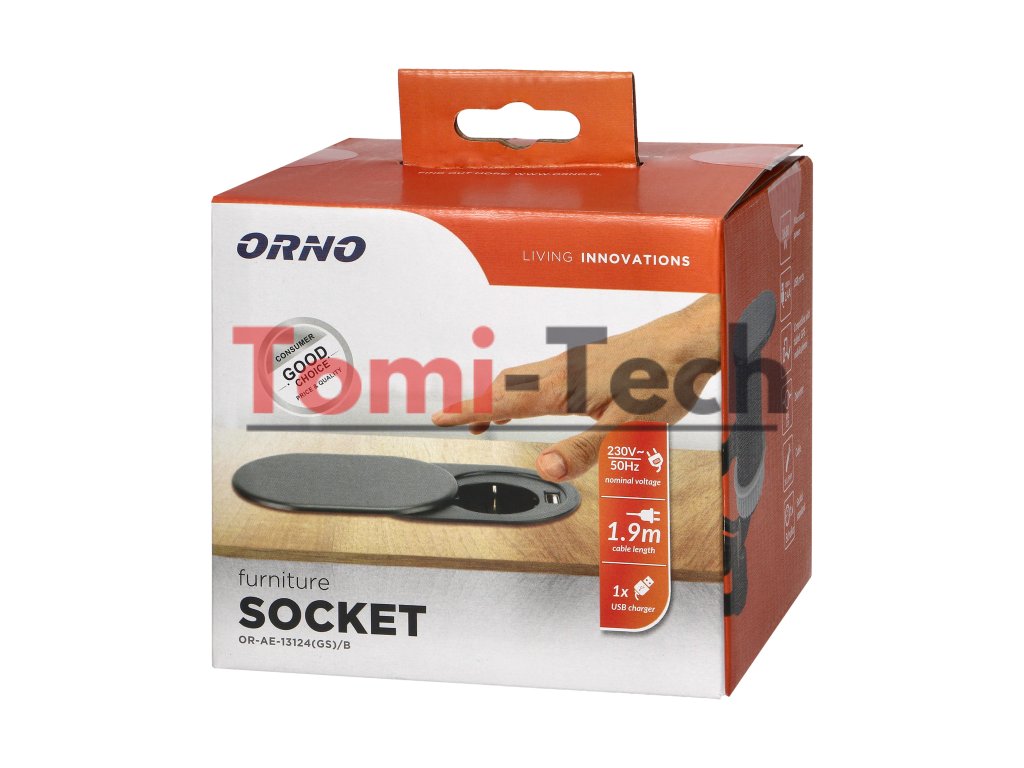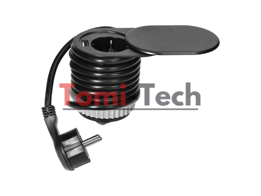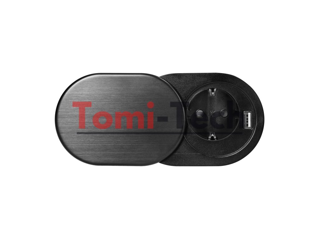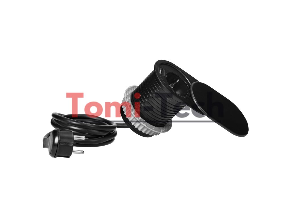 Nábytková zásuvka Ø6cm, čierna, zapustená do kuchynskej linky s posuvným krytom, USB nabíjačkou a 1,9m káblom, 1x2P+Z, 1xUSB (2,4A), 3x1,5mm², Schuko verziaDodatočné parametre