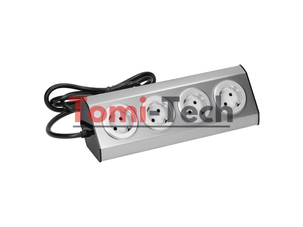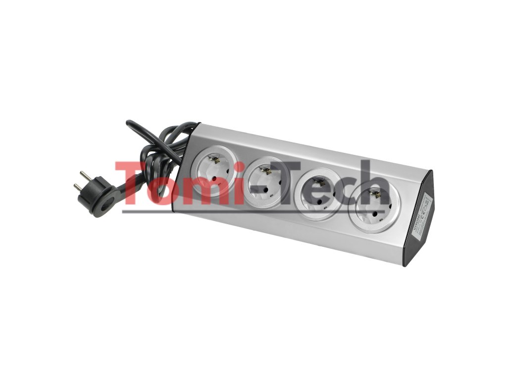Nábytok, kuchynská zásuvka namontovaná na suchý zips 4x2P+Z schuko, INOX s 1,5m káblom.