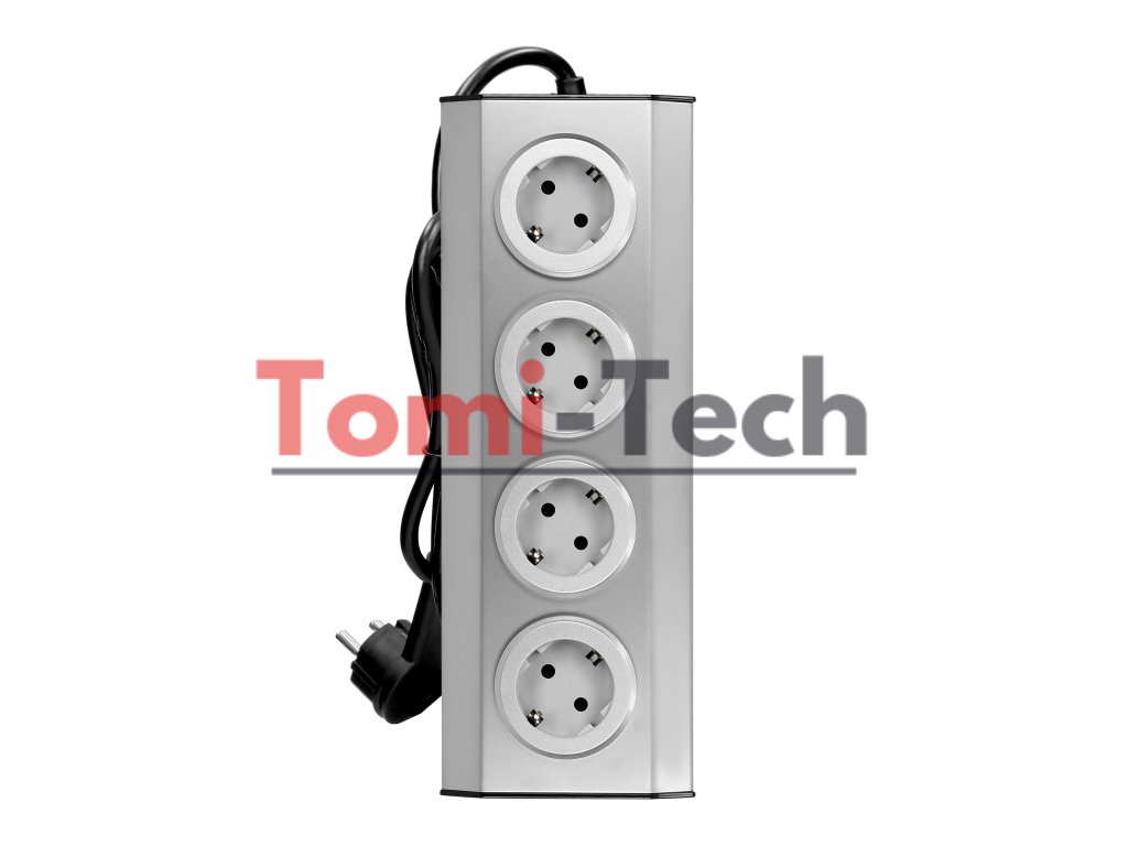 Sada štyroch zásuviek s uzemnením Schuko, ideálna do kuchýň a kancelárií, na rovné povrchy aj do rohov. Jednoduchá a rýchla inštalácia pomocou suchého zipsu uľahčuje inštaláciu každému používateľovi a zaisťuje stabilné upevnenie k povrchu bez nutnosti vŕtania alebo skrutiek. Kryt z nehrdzavejúcej ocele je vysoko odolný a elegantný. Sada zásuviek obsahuje 1,5 m kábel.Dodatočné parametre